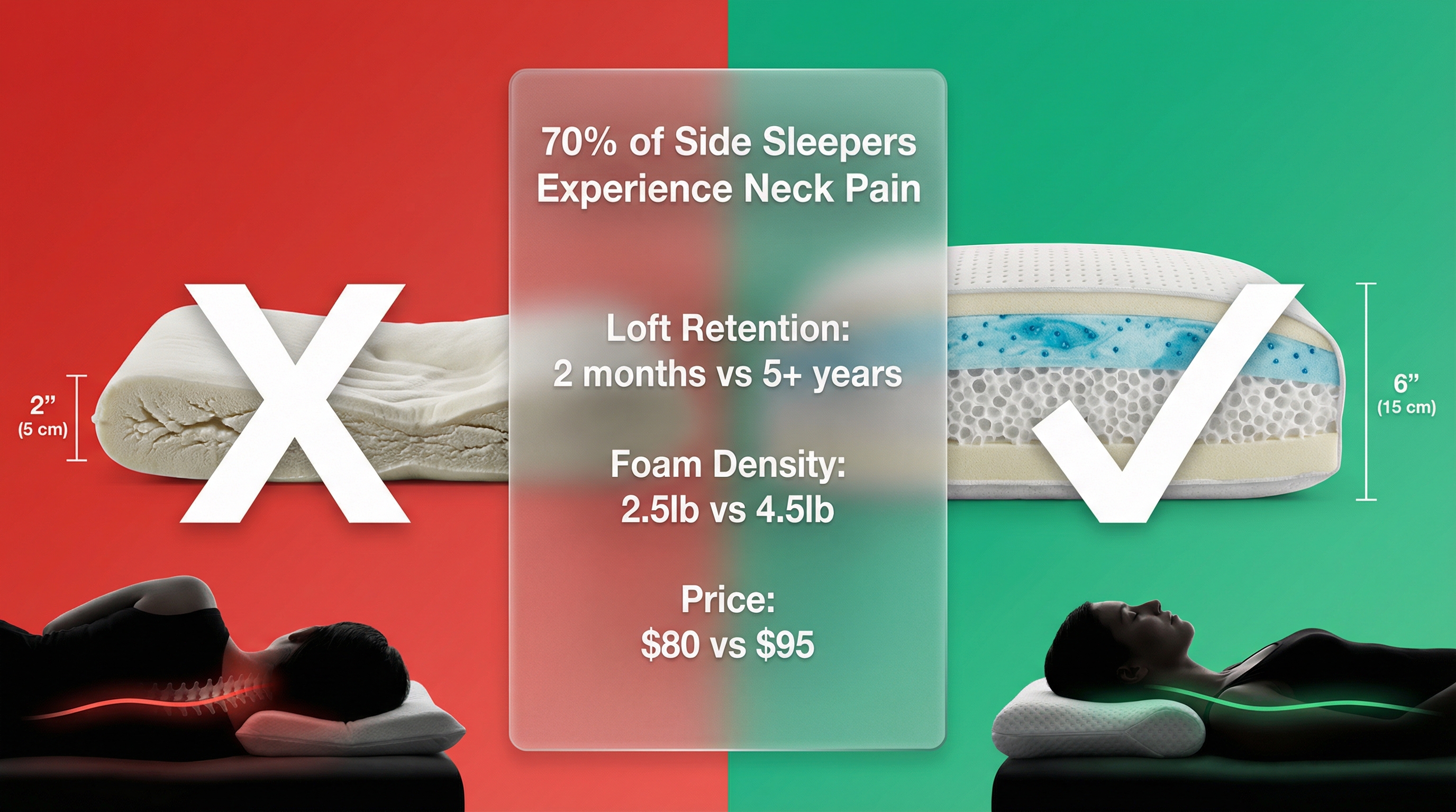 - Over 70% of side sleepers experience chronic neck pain because standard pillows collapse and fail to support the critical shoulder gap.