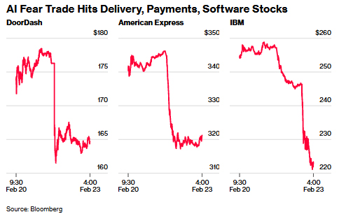 The February 22-23 "AI scare trade" triggered by Citrini Research's bearish report extended beyond IBM to payment processing companies, software-as-a-service (SaaS) providers, and delivery platforms—the exact infrastructure layer that cross-border e-commerce sellers depend on for inventory management, payment processing, and logistics optimization. Economist Nassim Taleb warned of potential software company bankruptcies, and institutional investors immediately reassessed positions in companies perceived as vulnerable to AI-driven disruption. This signals that AI commoditization is eroding pricing power and consulting margins across the entire enterprise software stack.