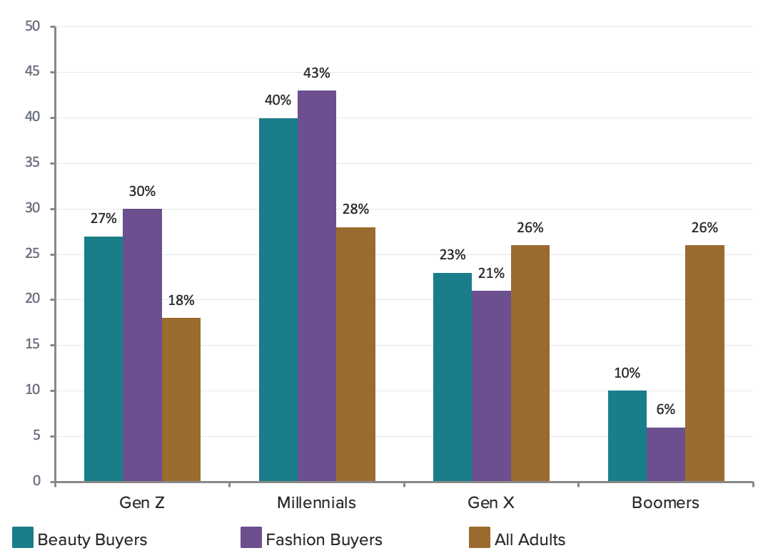 - 73% of fashion buyers are Gen Z/Millennials; 79% purchase via Instagram/TikTok; Hispanic consumers 26% of market; GLP-1 adoption reshapes product categories