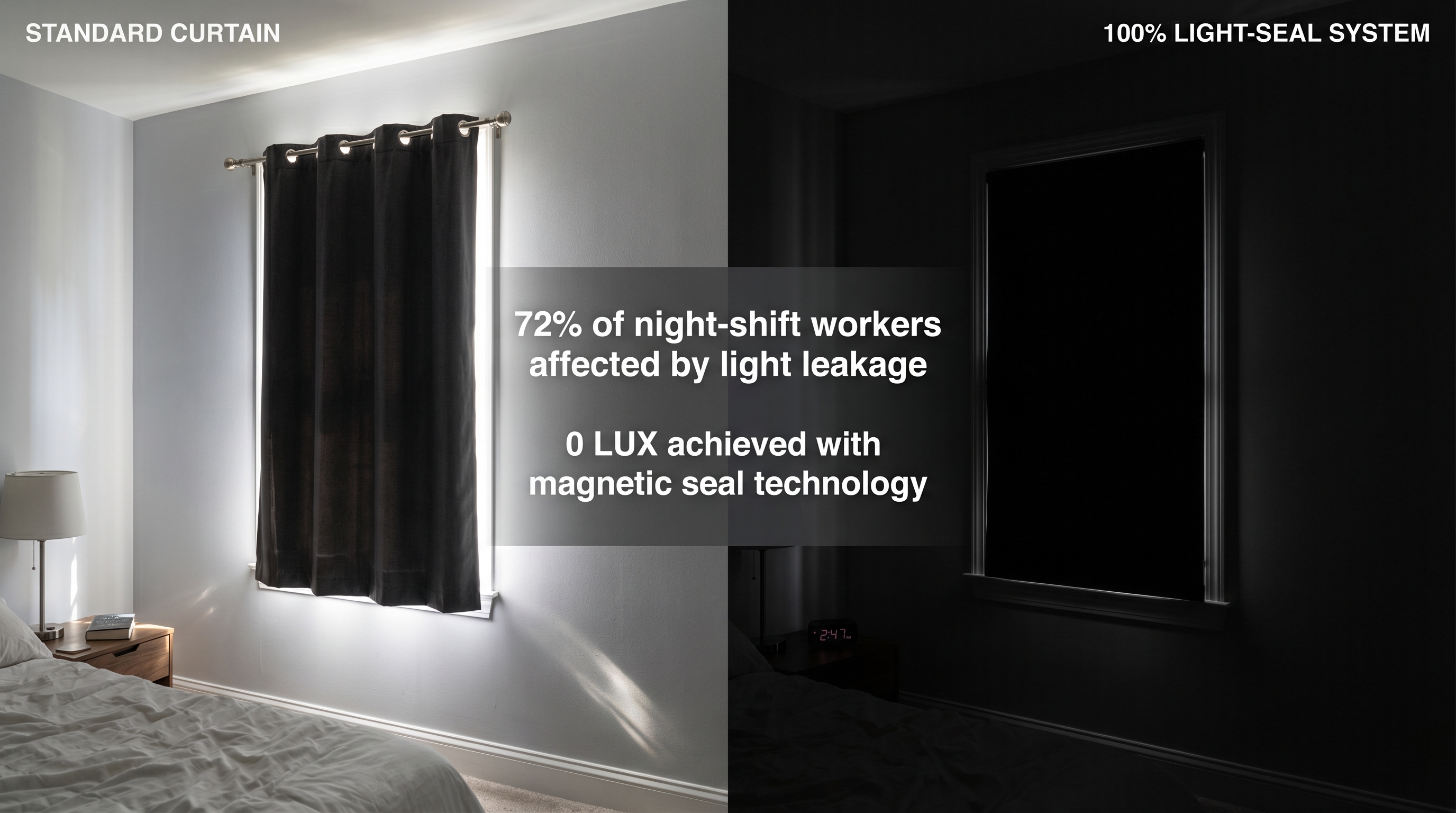 - Recent surveys indicate that 72% of night-shift workers fail to achieve deep sleep due to "halo" light leakage around the edges of traditional blackou...