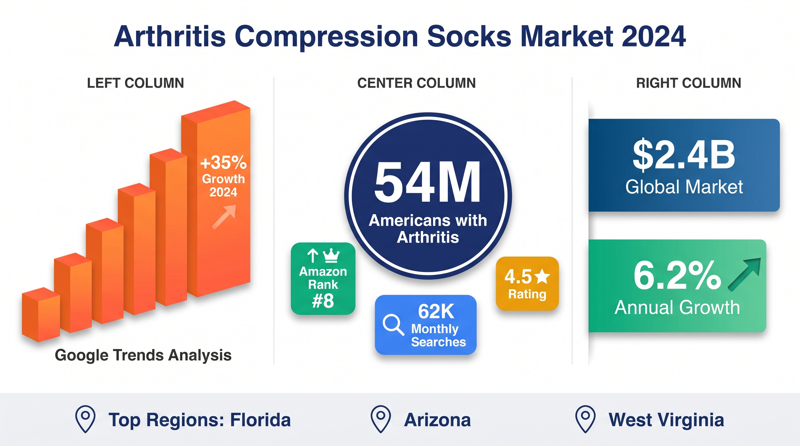 - Search volume: "Compression socks for arthritis" trending up 35% in 2024.
