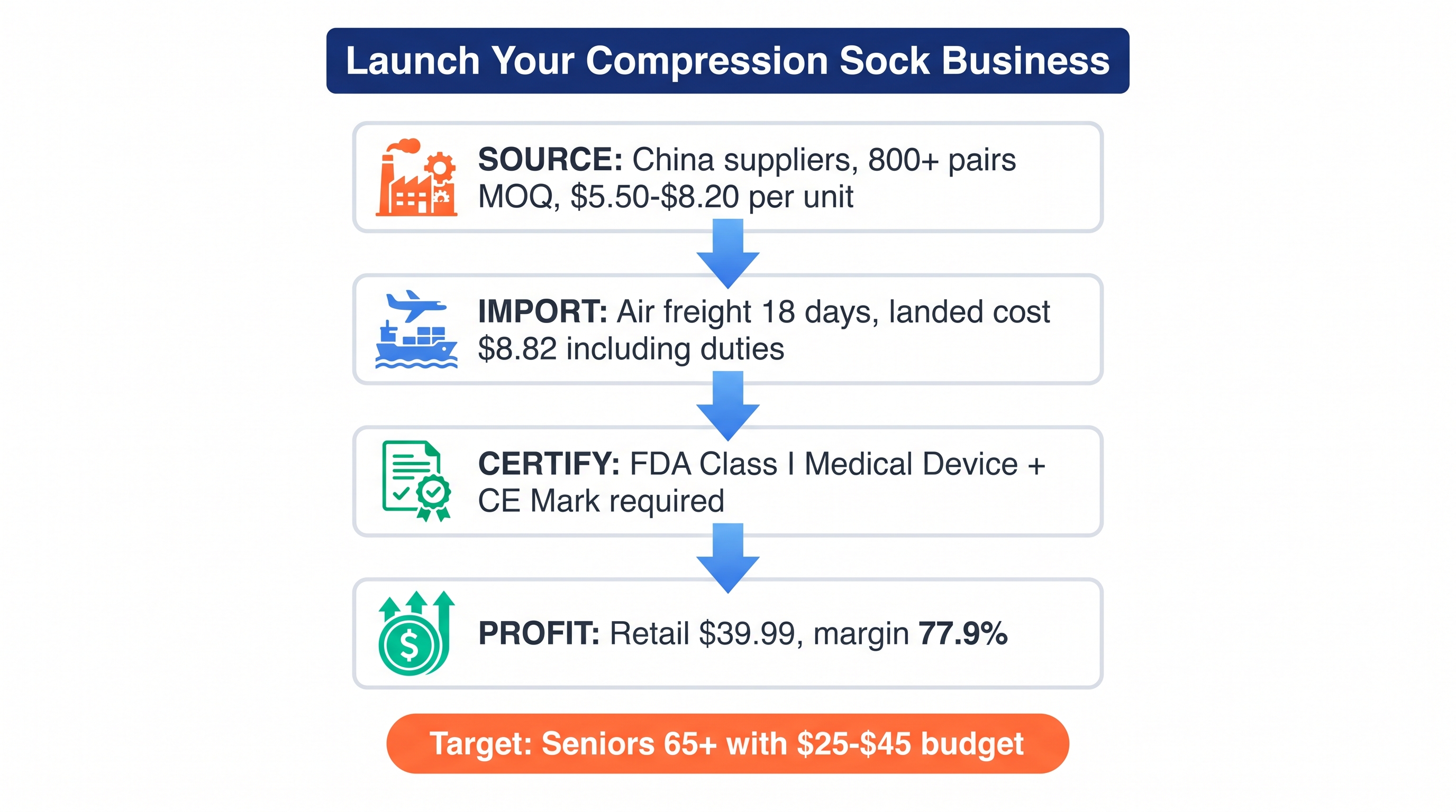 - Turkey: $9.00 unit cost, high-end medical knitting technology.