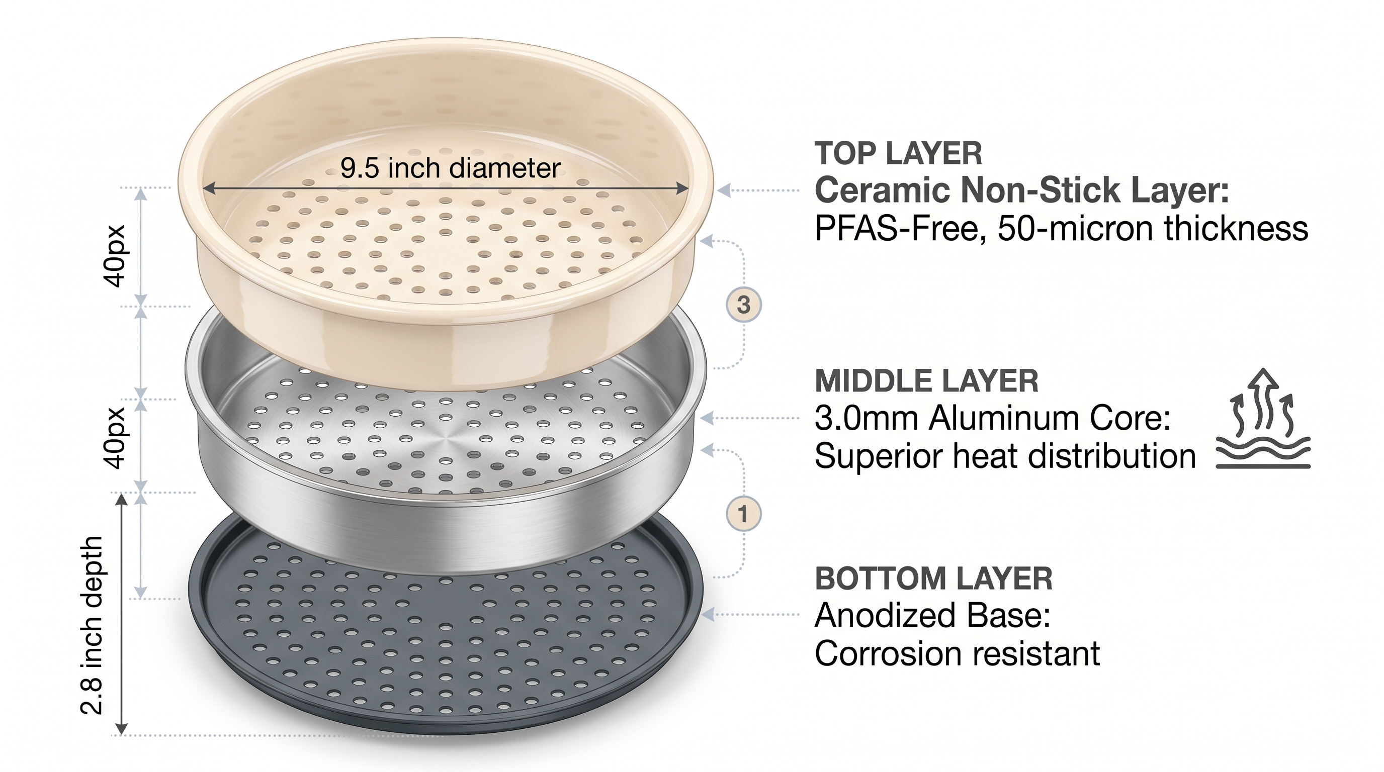 - Key features: Professional-grade ceramic coating, PFAS-free, 3.0mm aluminum core.
