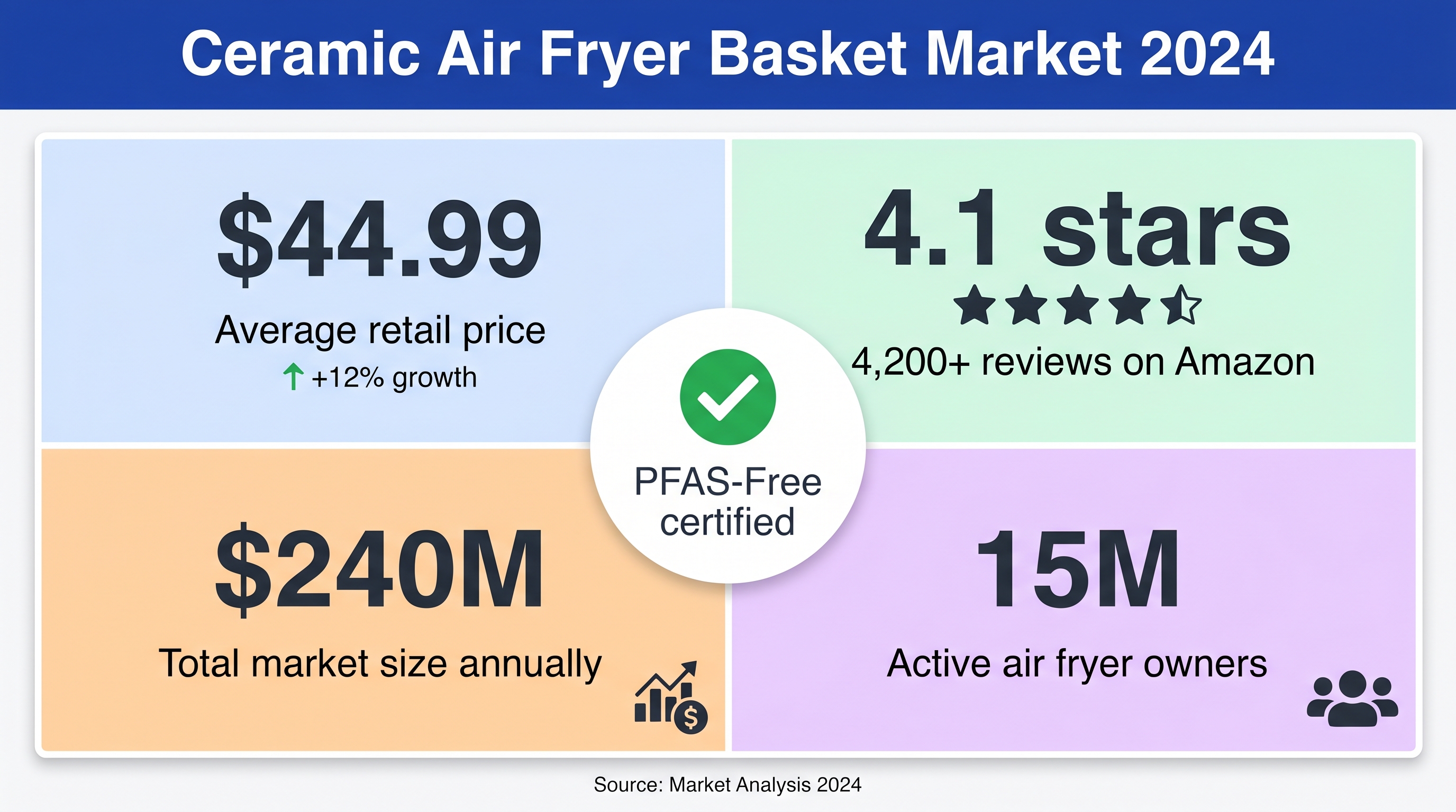 - Search volume: "Ceramic air fryer basket" trending up 42% in past 12 months.