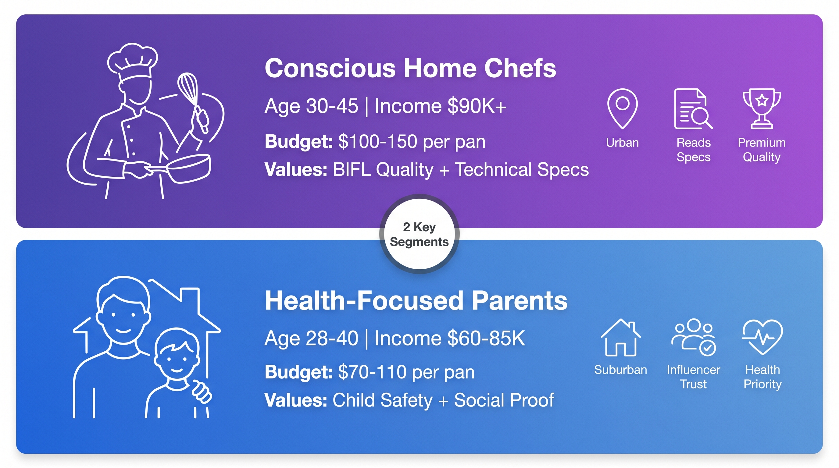 - Demographics: Age 28-40, Income $60-85K, Suburban.