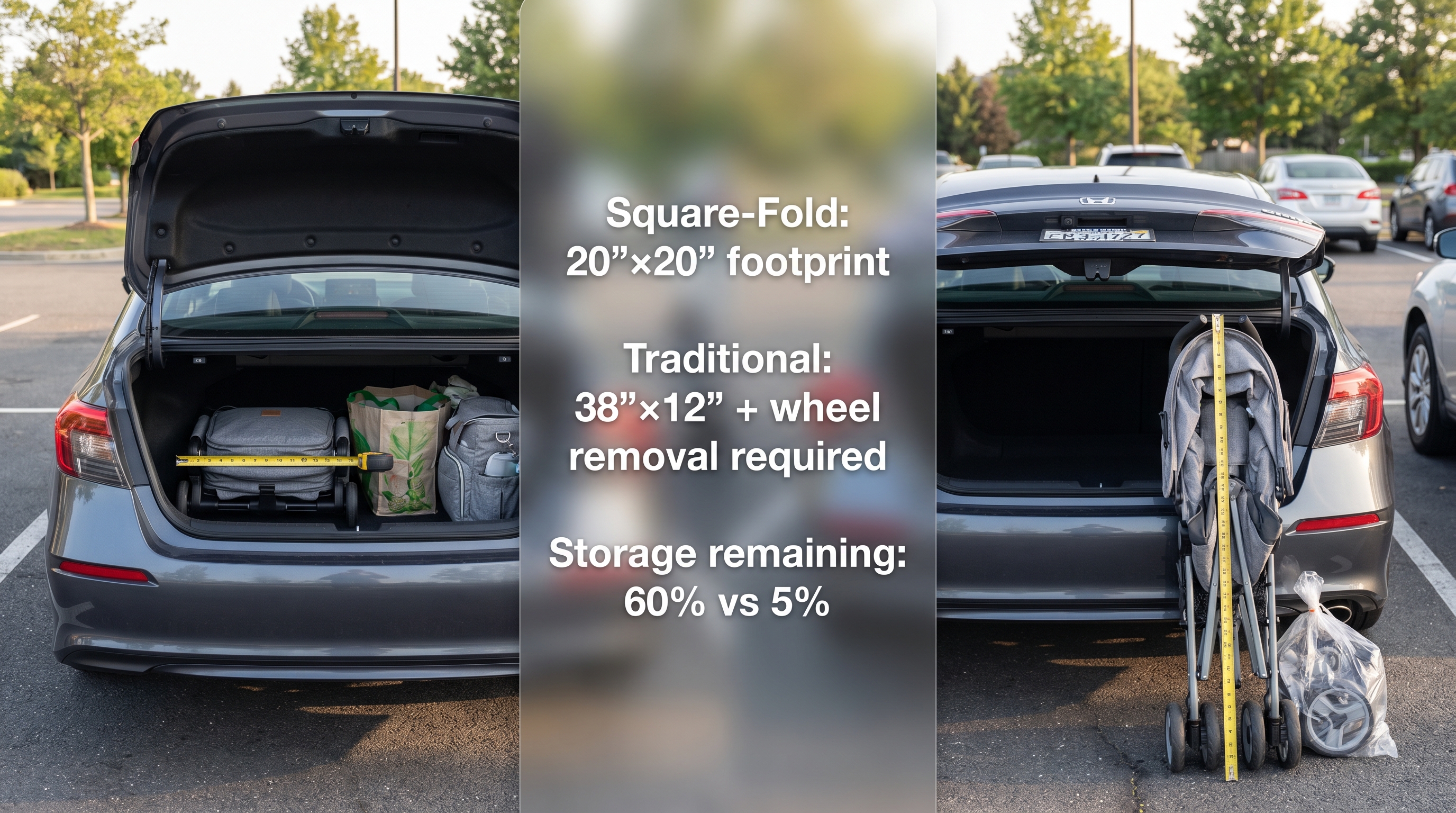 74% of parents report that 'compact' strollers still require wheel disassembly to fit into common sedan trunks like the Honda Civic.