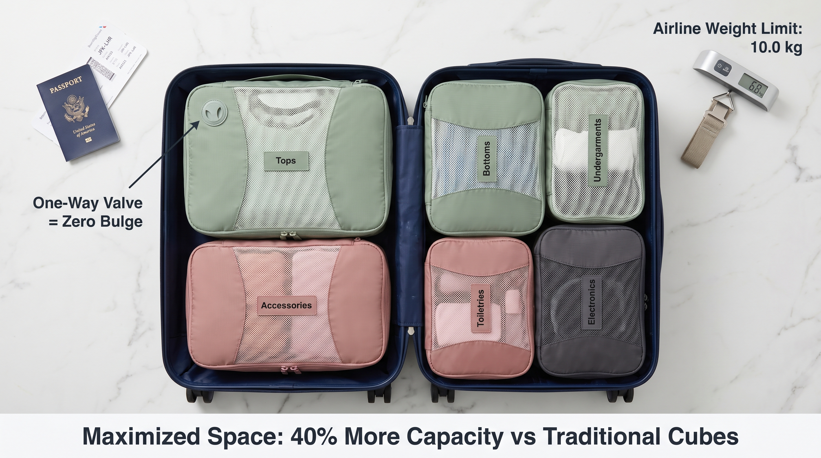 Female travelers are reporting high failure rates with traditional zipper-based compression cubes. The secondary compression zipper frequently snags the lightweight fabric, leading to permanent rips. Additionally, cubes often lose their flat shape, creating a "football bulge" that makes stacking impossible.