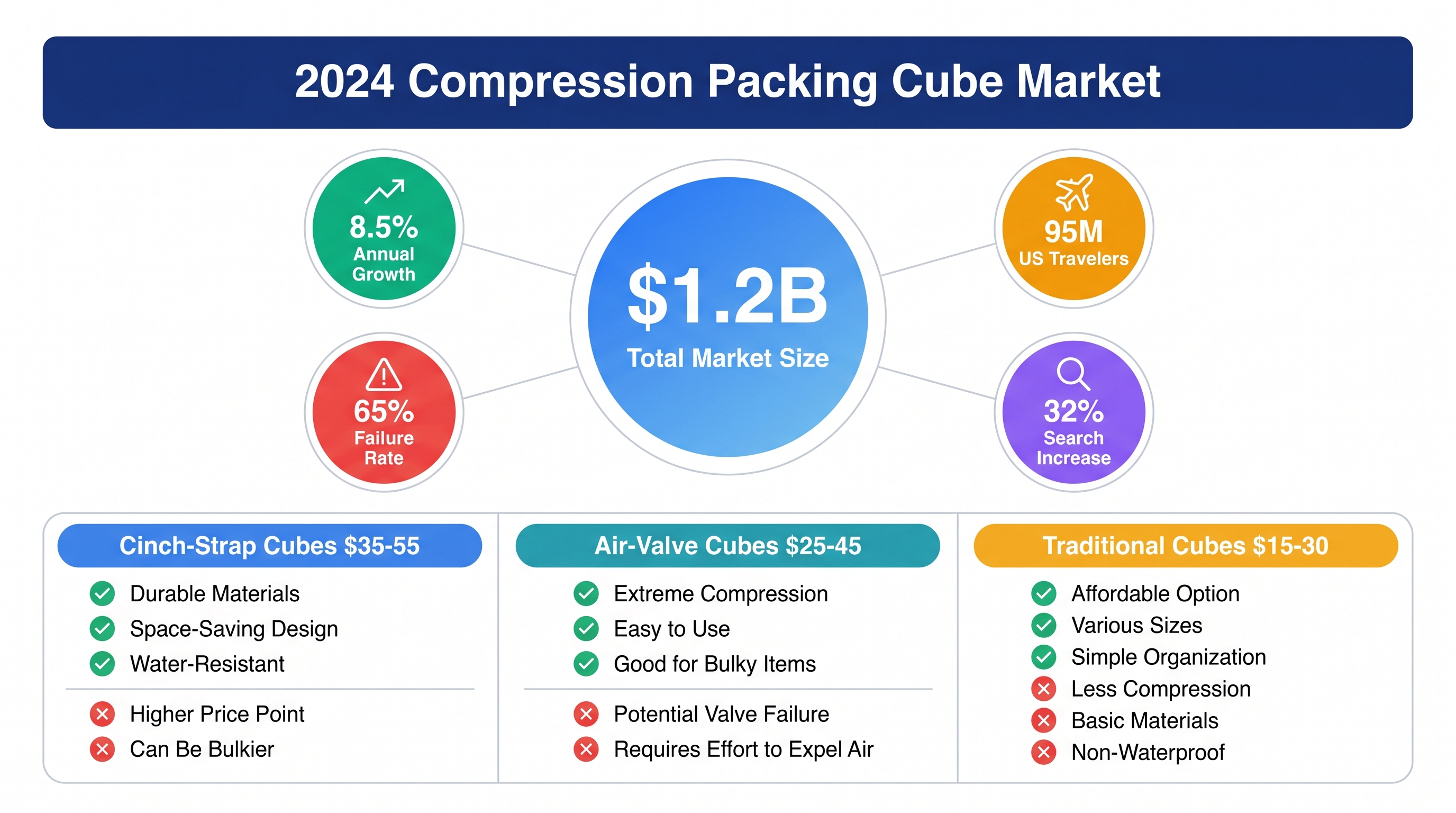 - Search volume: "Best compression packing cubes" trending up 32% in past 12 months.