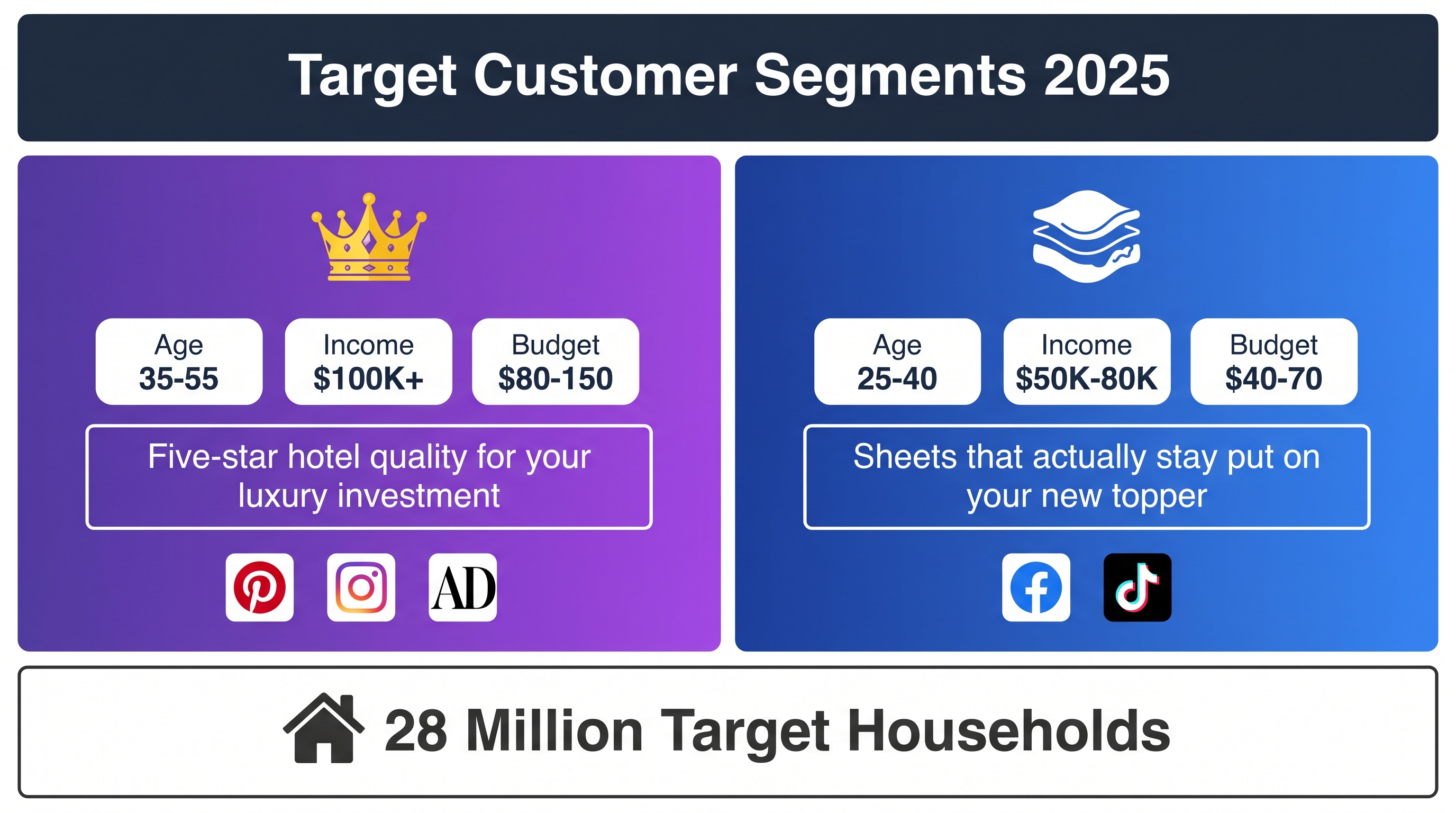 - Buying behavior: Prefers Egyptian or Pima cotton; values "Five-Star Hotel" quality.