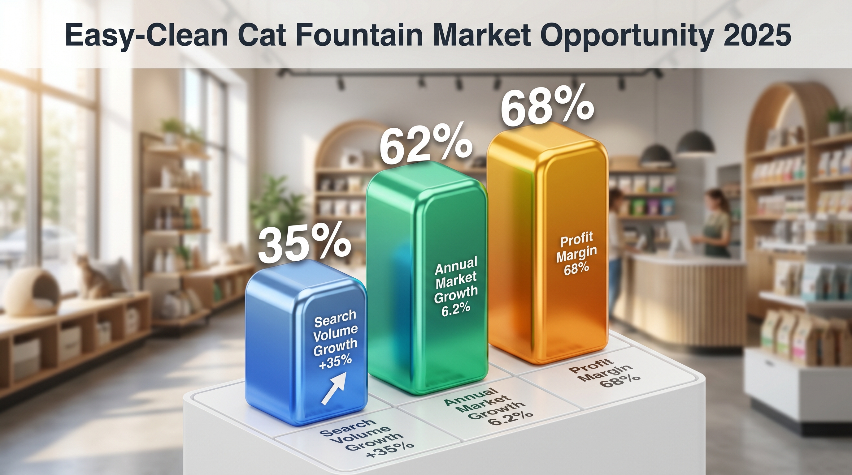 - Search volume: "Easy clean cat fountain" trending up 35% in the past 12 months.