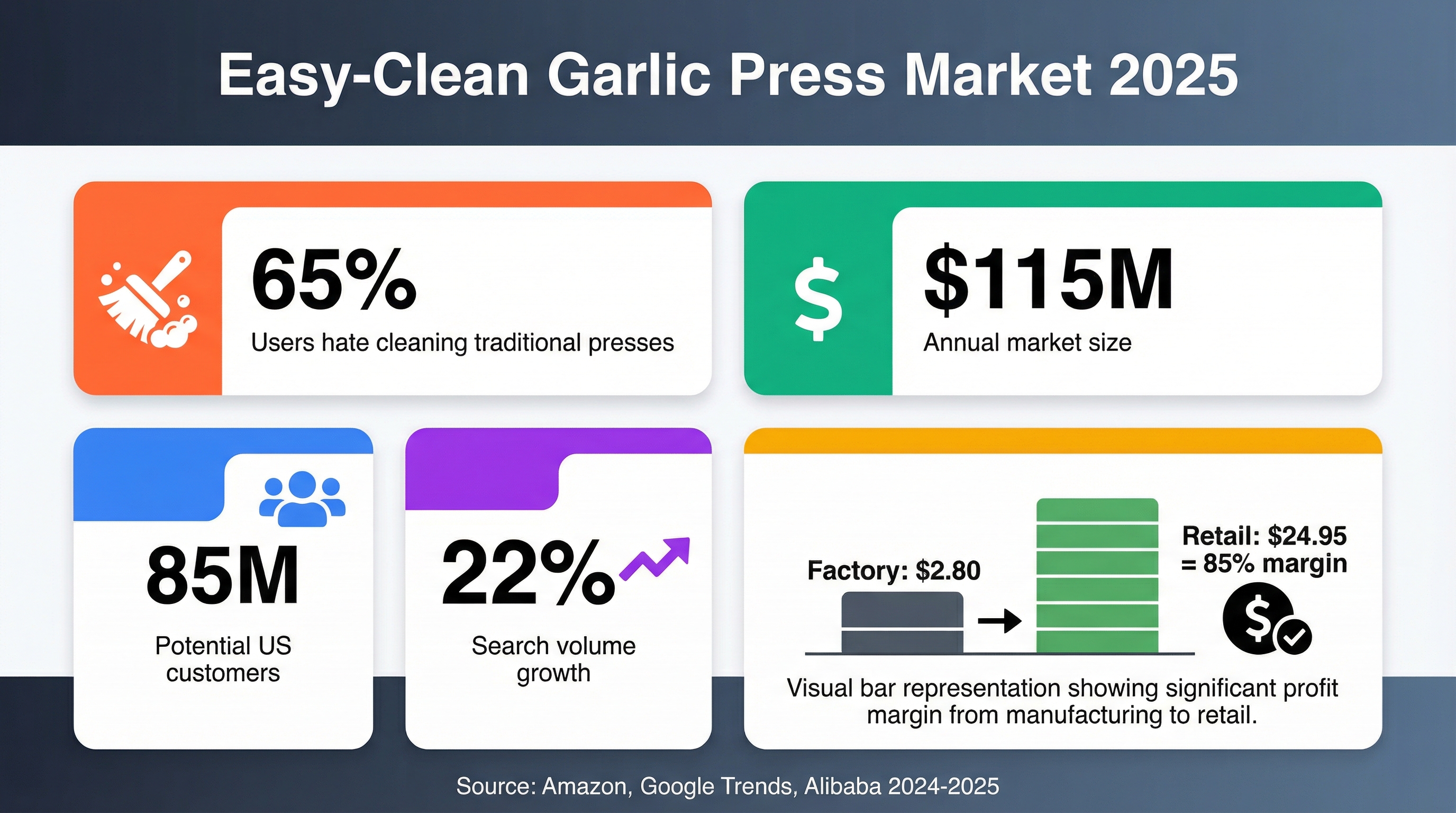 - Search volume: "Easy clean garlic press" trending up 22% in past 12 months.