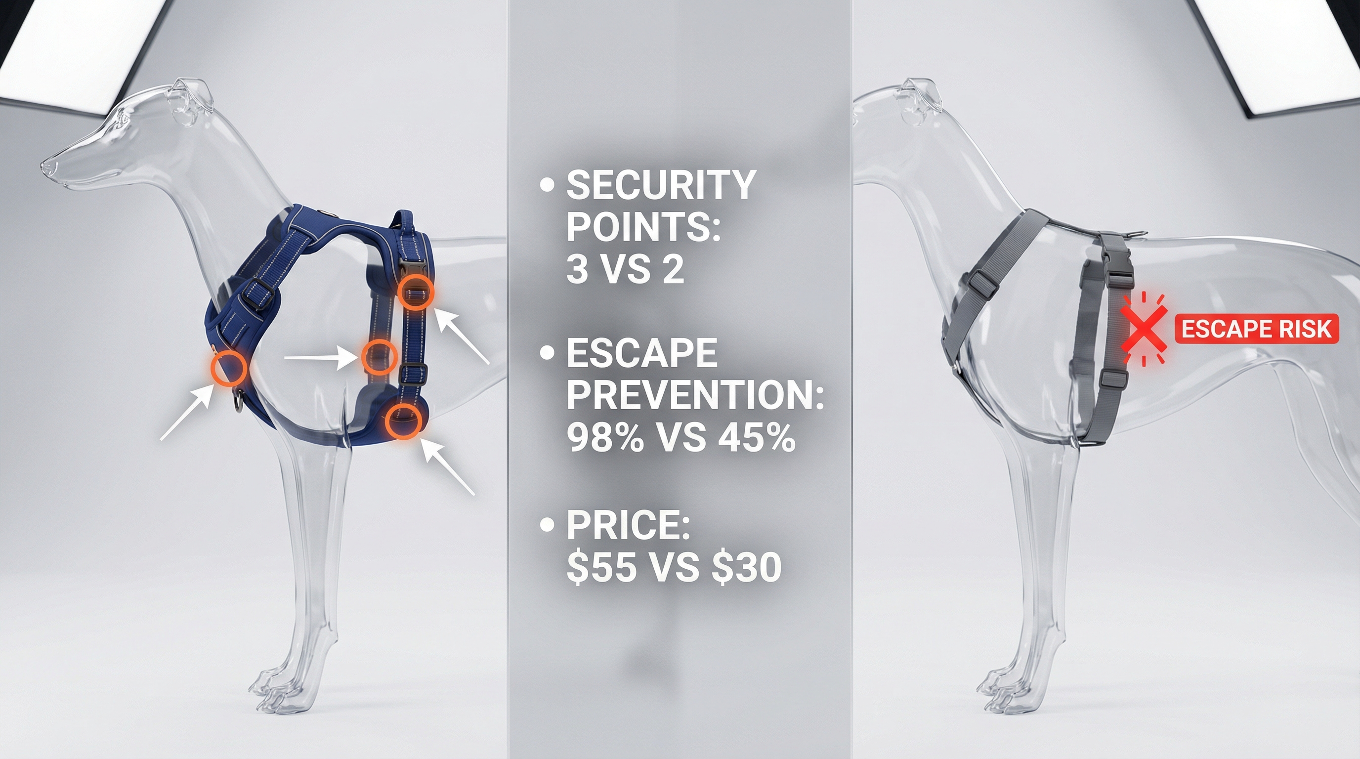 - Common complaint: "My Greyhound slipped his 'secure' harness in seconds when a car backfired, nearly running into traffic."