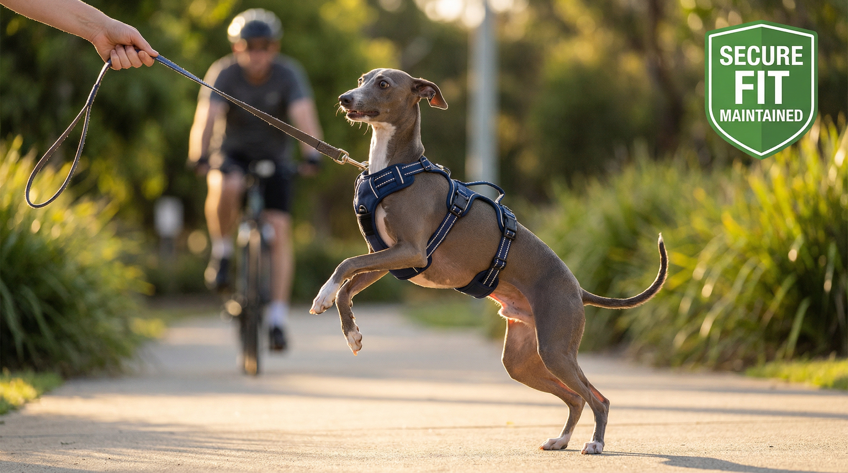 Pet owners on Twitter and niche forums are expressing deep anxiety over current harness designs that allow narrow-waisted breeds to "back out" when startled.