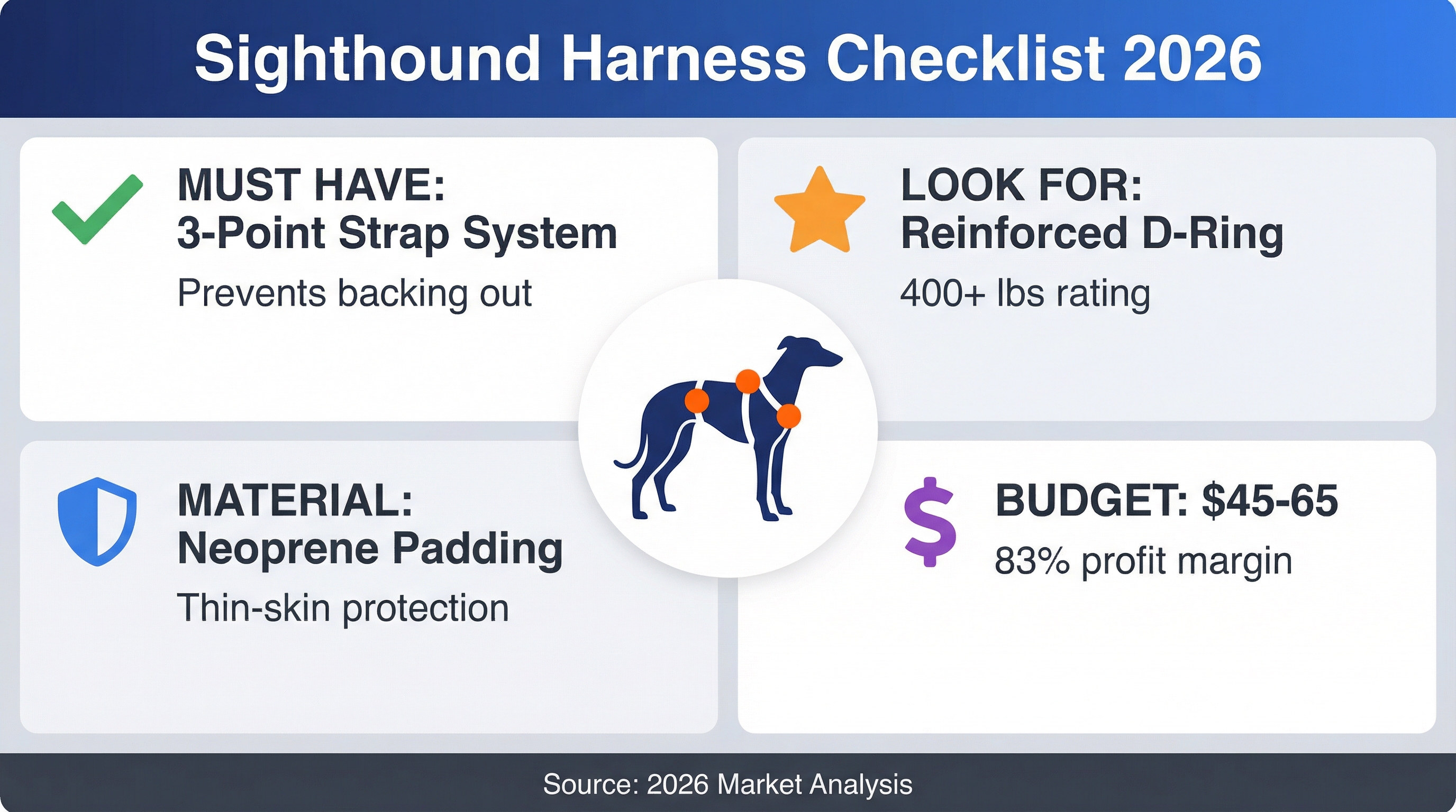 Over 75% of sighthound owners report that standard "escape-proof" harnesses fail to secure their pets due to unique anatomical deep-chested profiles.