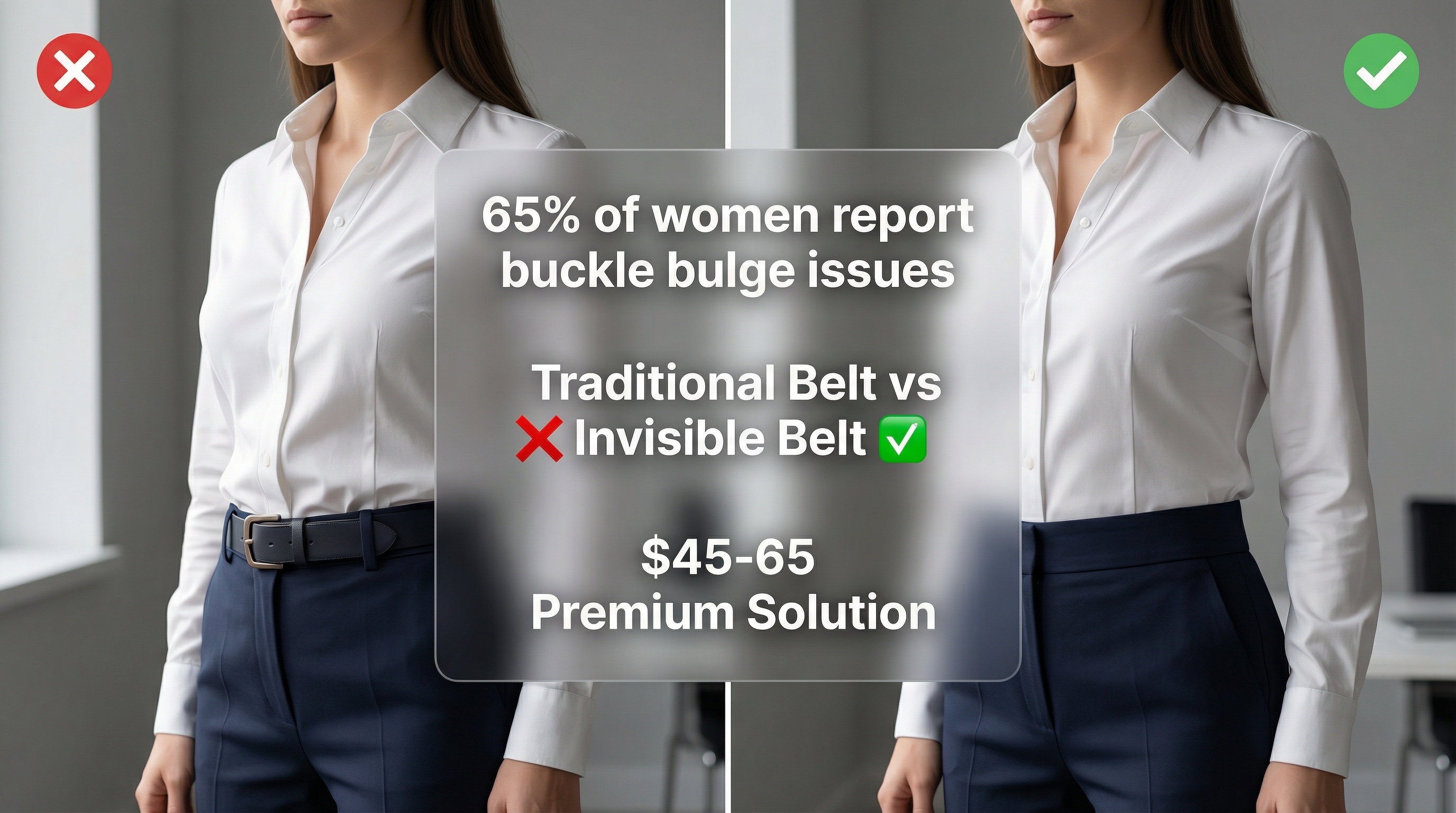 Over 65% of women report that standard belt buckles create an unsightly "bulge" that ruins the silhouette of fitted professional attire.