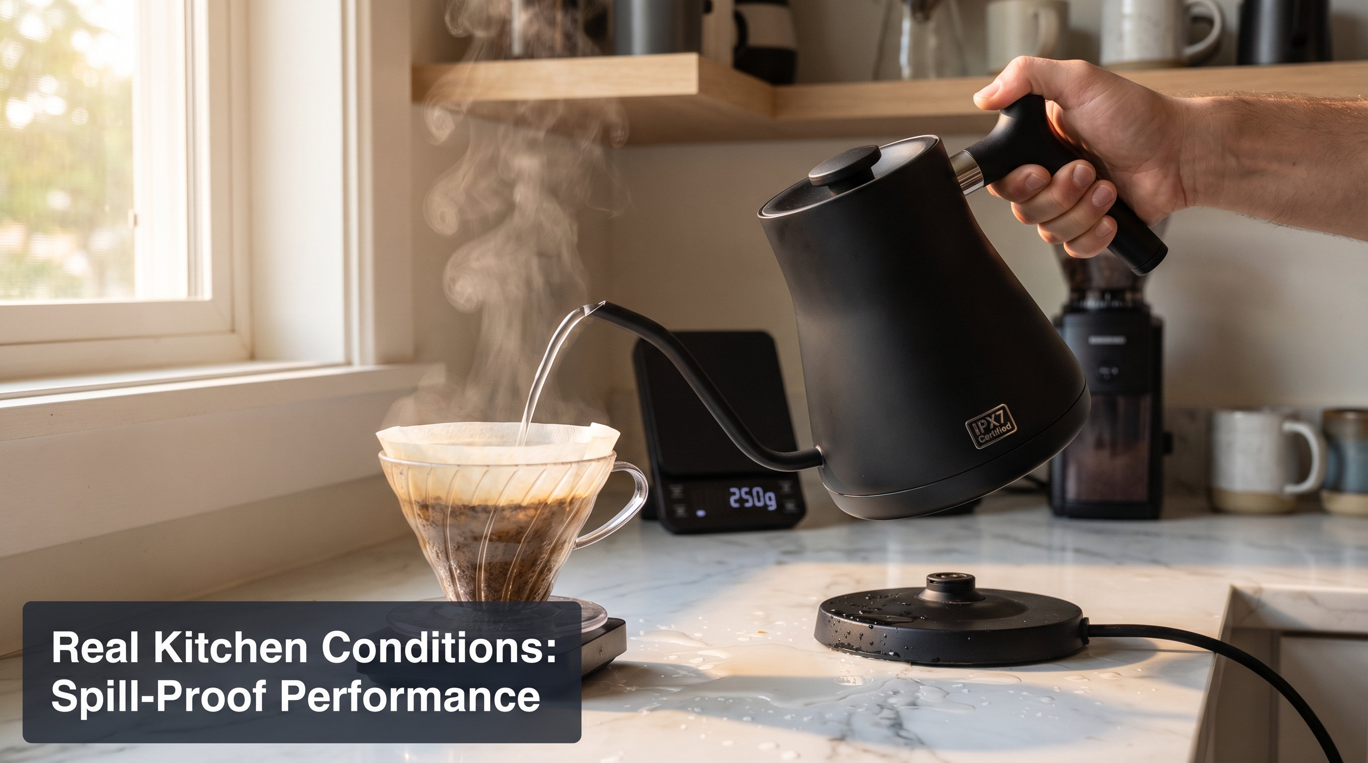 High-end coffee drinkers are losing $150+ investments due to poor water-sealing. Minor spills during the "pour-over" process seep into the base, shorting out digital screens and heating elements within months.