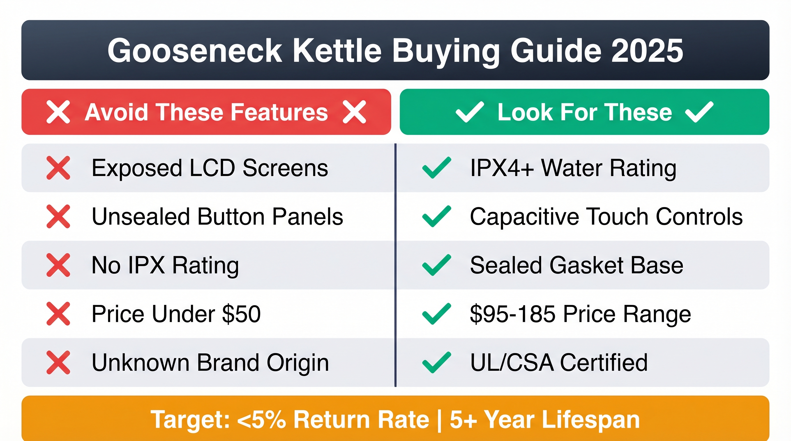 - Search volume: "Reliable gooseneck kettle" trending up 22% in past 12 months.
