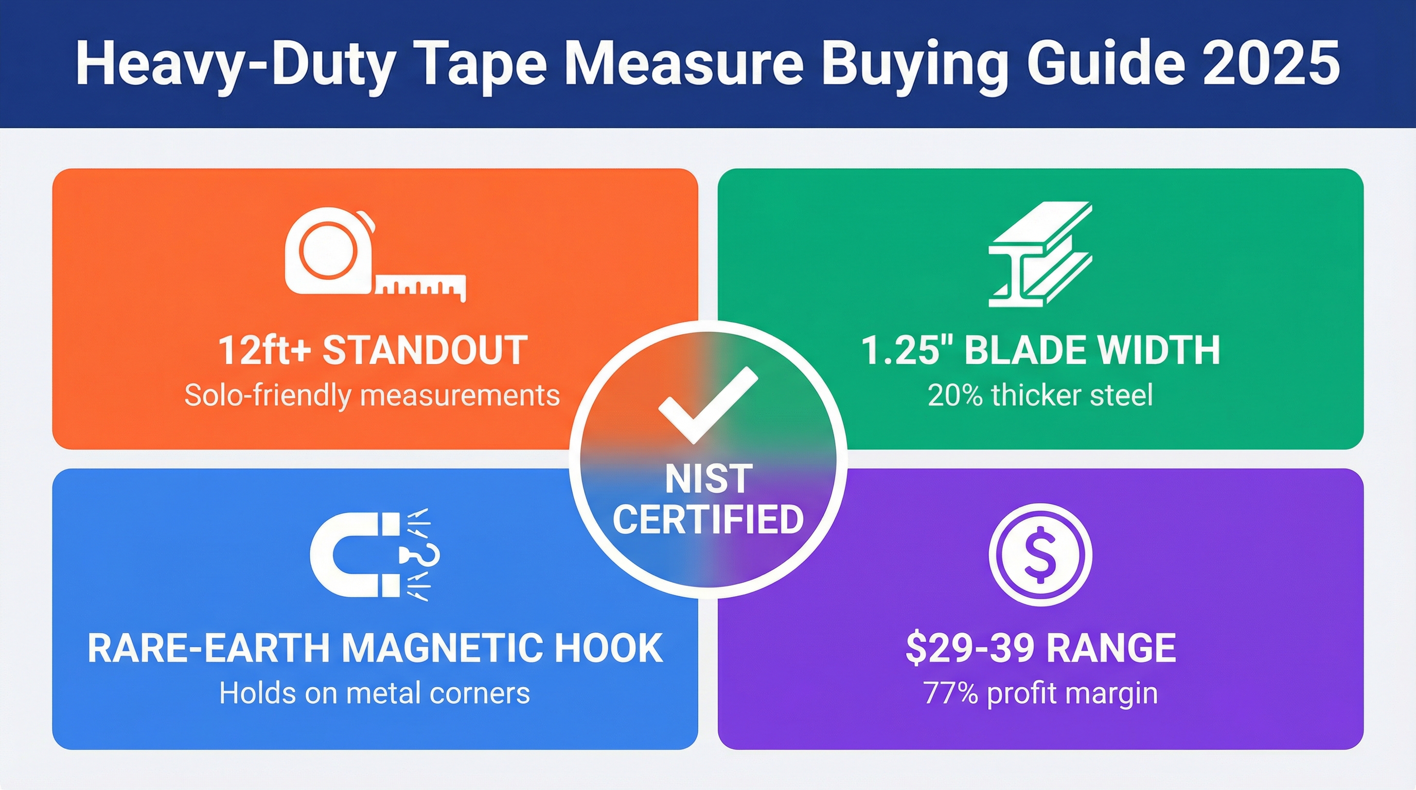 - Search volume: "High standout tape measure" trending up 22% in past 12 months.