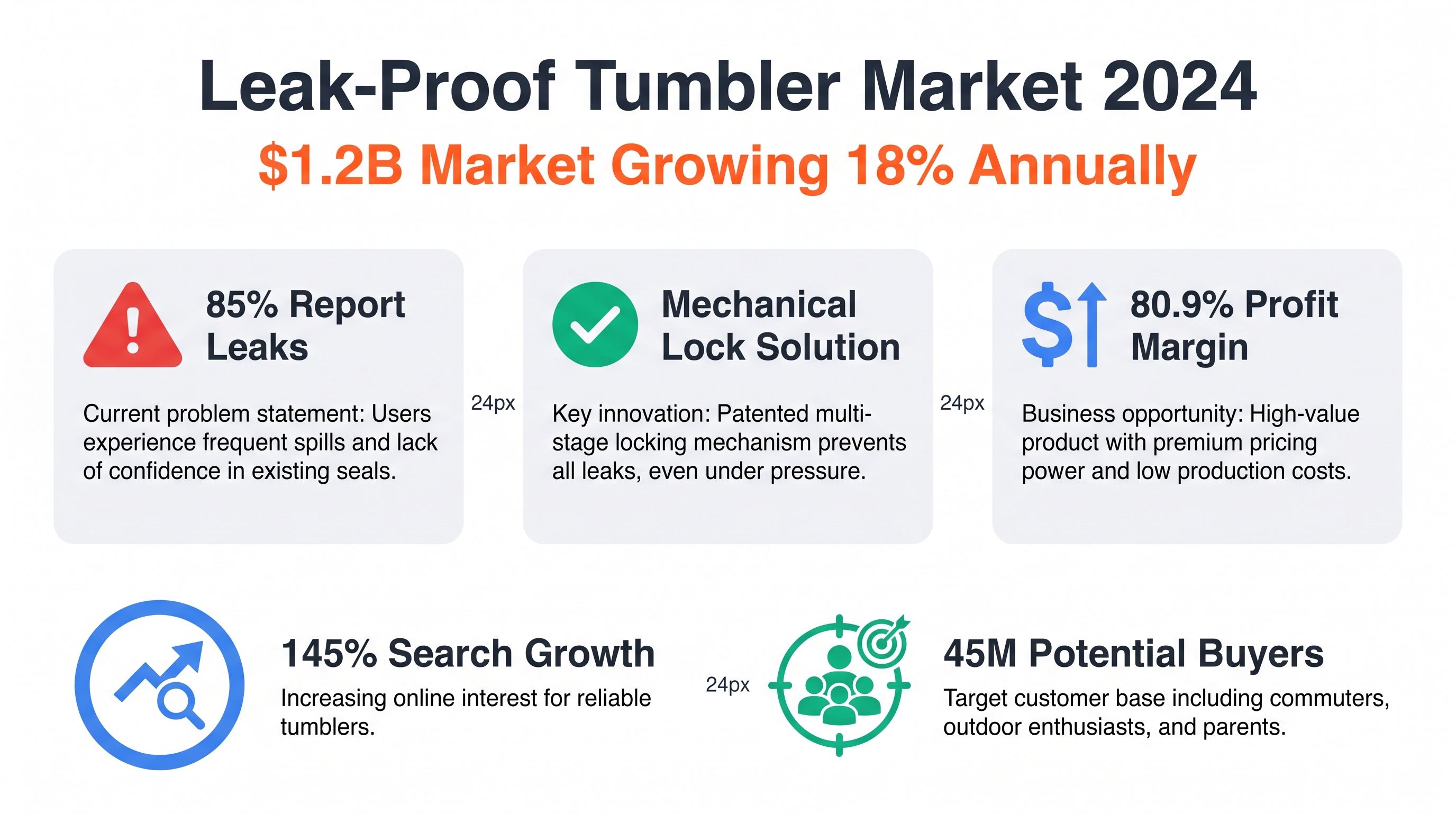 - Pain point: Tumbler leaking in gym bags.