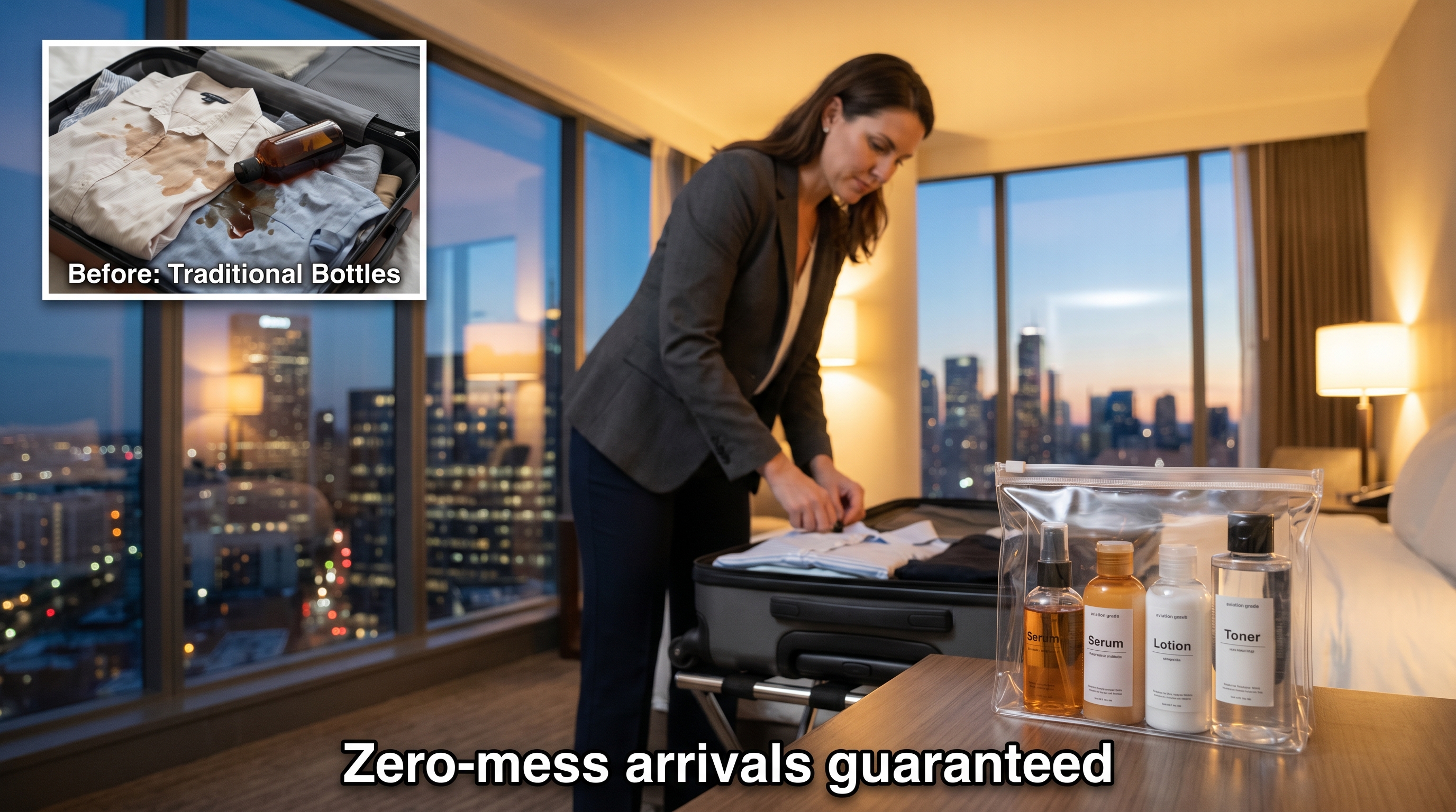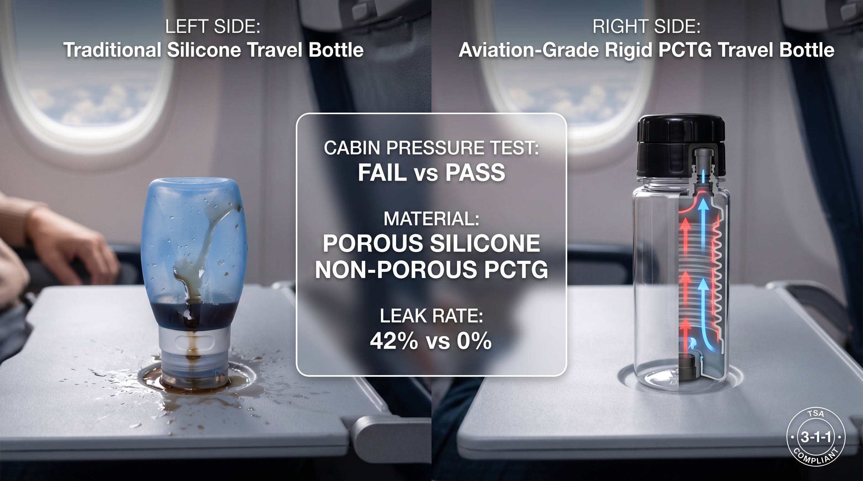 Travelers are finding that popular silicone bottles fail during long-haul flights. The flexible material reacts to cabin pressure, forcing liquids out of the valves. Furthermore, expensive serums often "leach" through porous silicone, leaving the bottle exterior sticky. Users are tired of cleaning exploded shampoo off their clothes and want a rigid, professional solution.