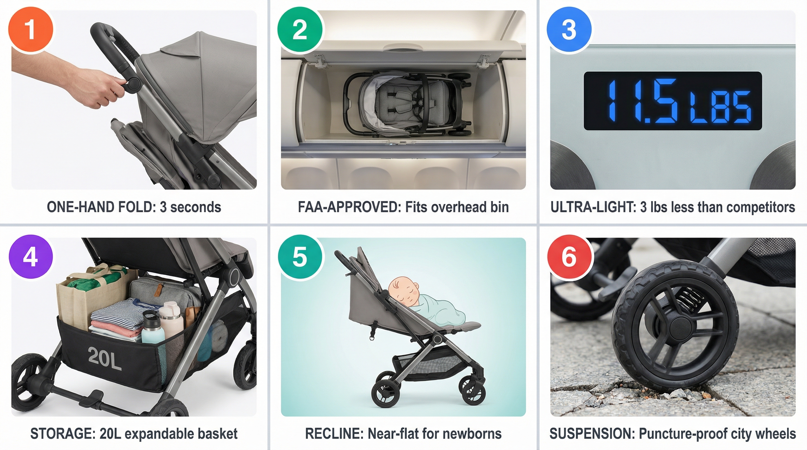 Marketing approach: High-energy TikToks showing a parent folding the stroller while holding a latte and a baby. Use "City-Proof" as the primary hook.