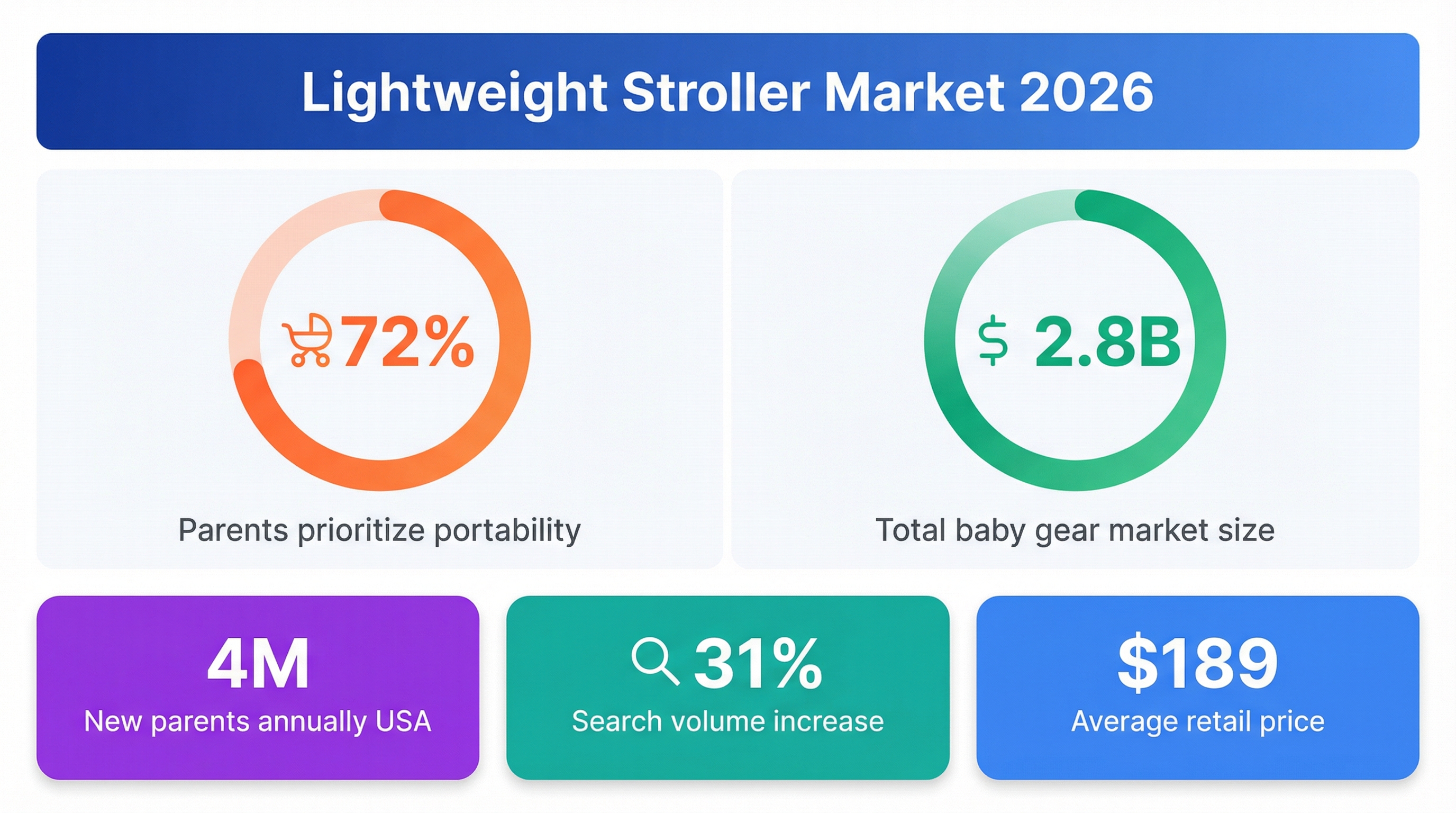 - Search volume: "Best travel stroller under 15 lbs" up 31% in past 12 months