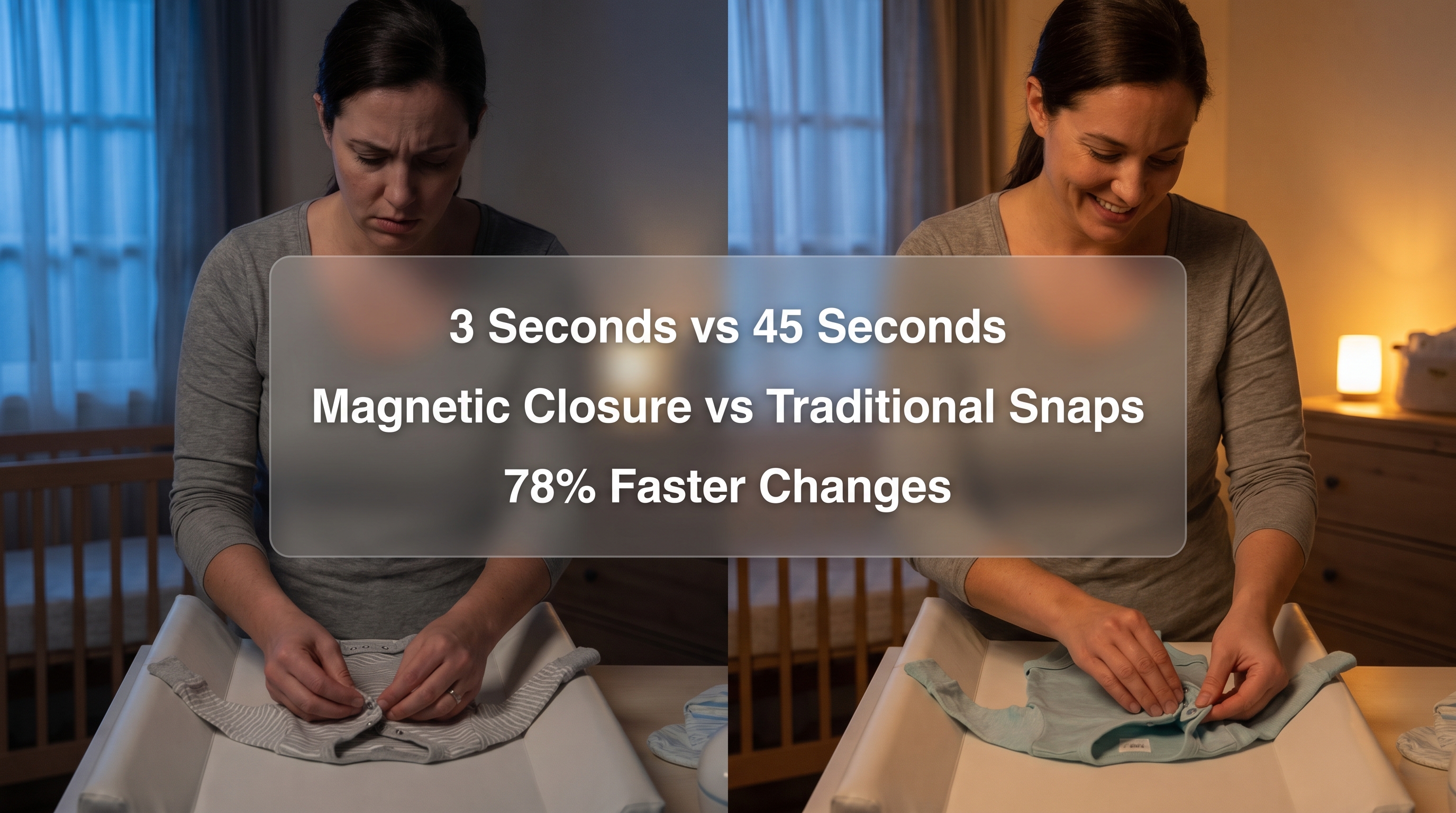 - Photos: Split-screen comparison of a struggling parent with snaps vs. a fast magnetic close.