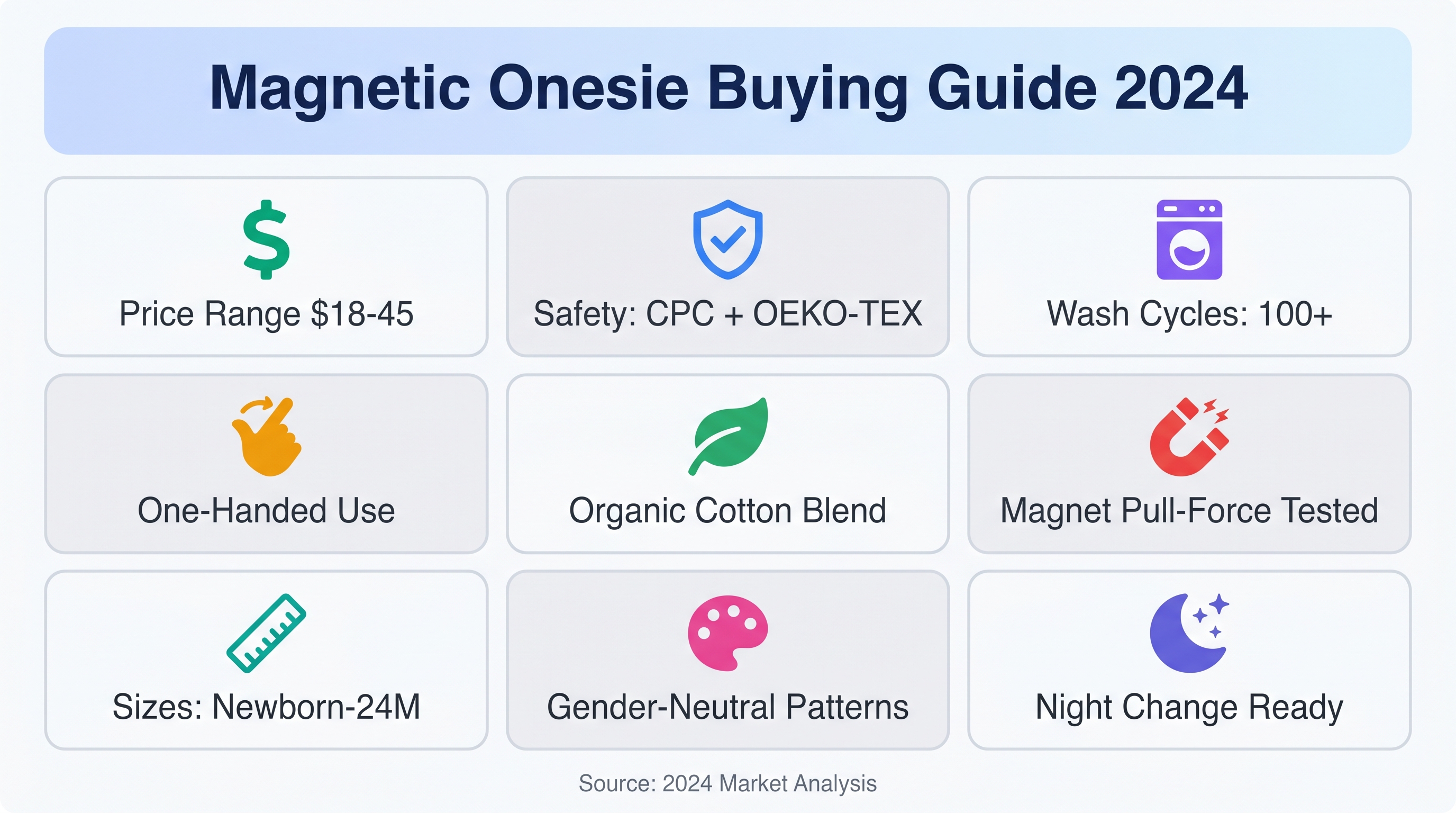 - Search volume: "Magnetic baby clothes" trending up 45% in past 12 months.