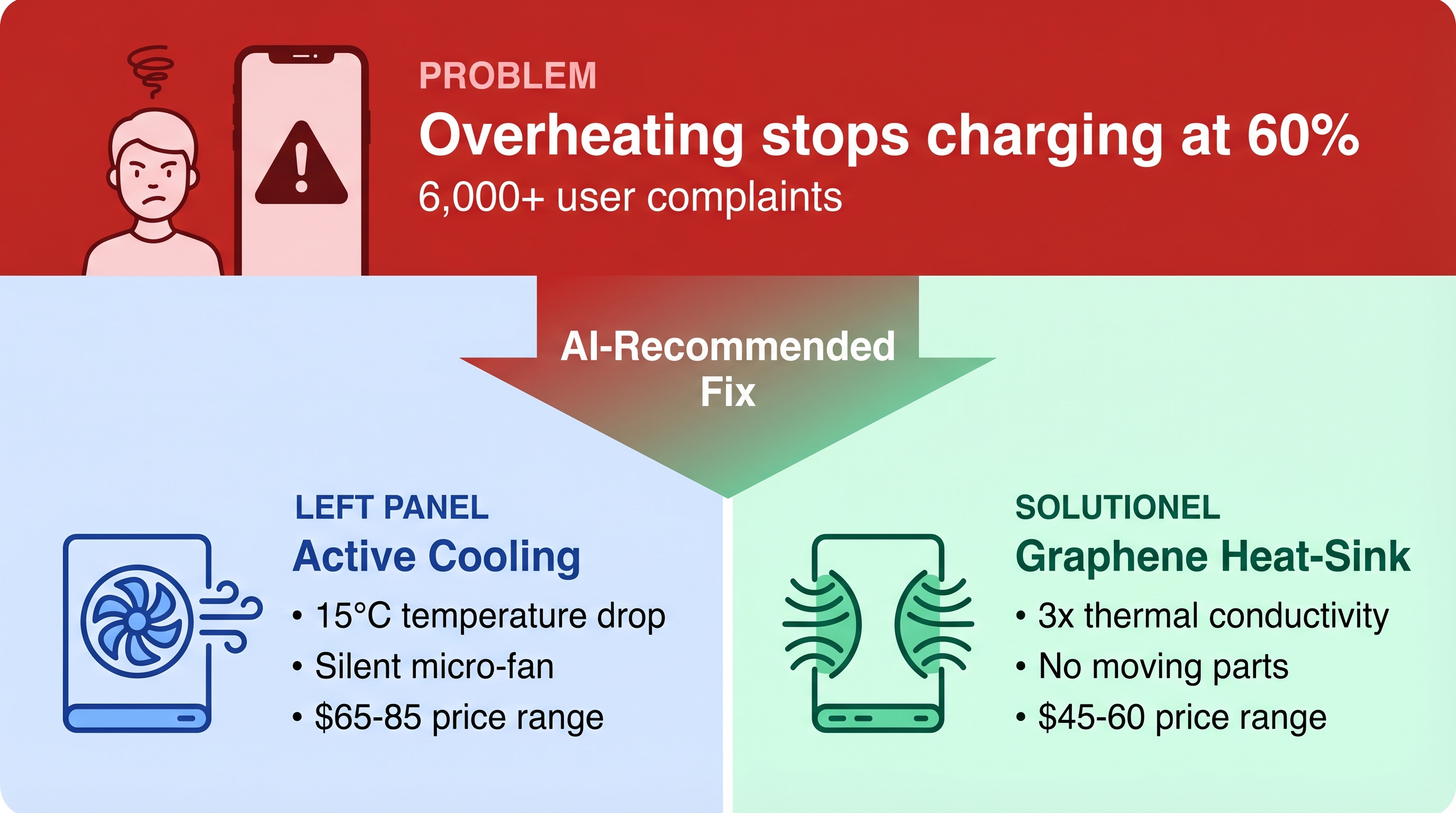 - Why current products fail: They rely on passive heat dissipation which cannot handle the high temperatures of wireless induction.