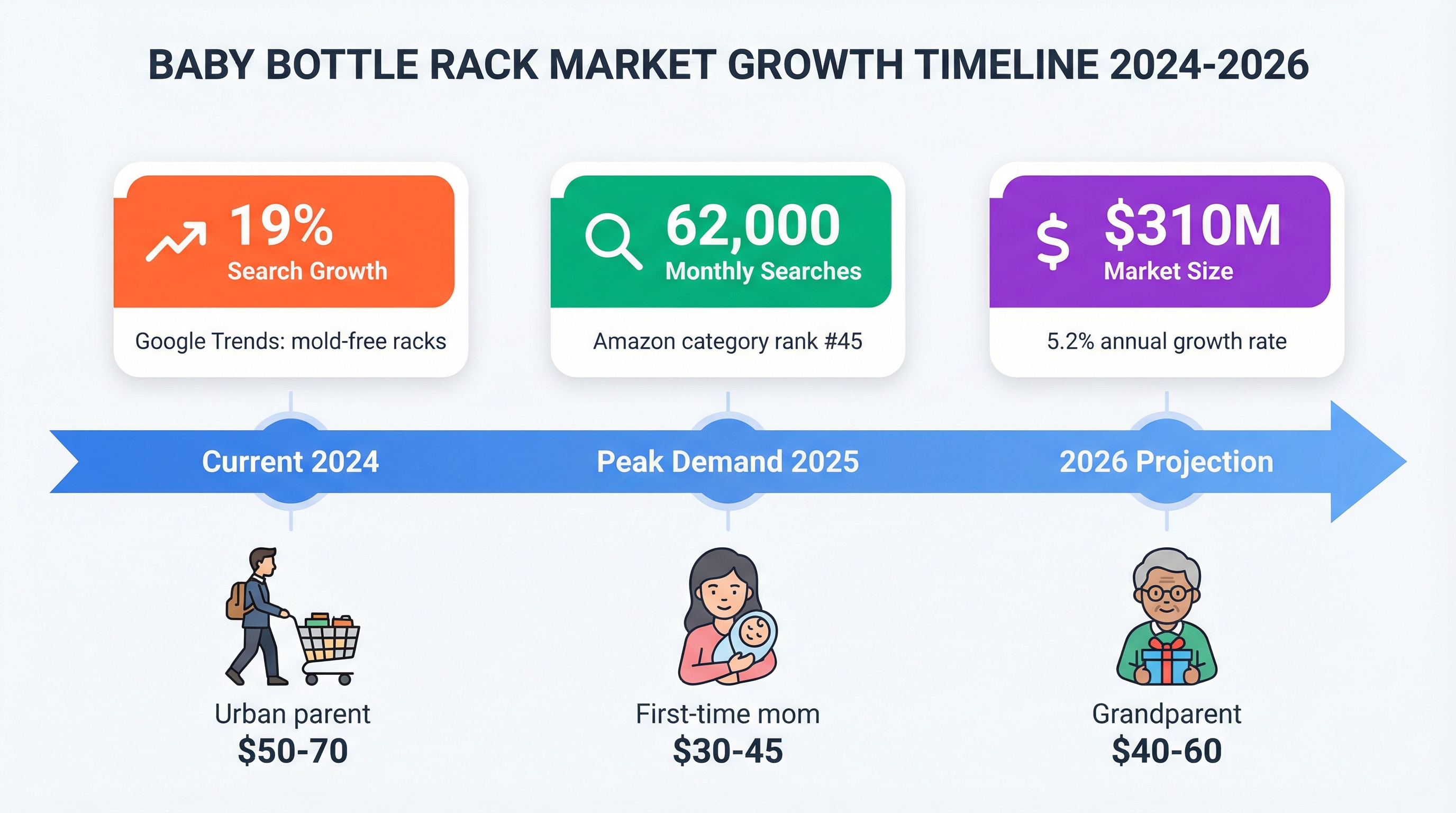 • Search volume: "Mold-free baby drying rack" trending up 19% in past 12 months.