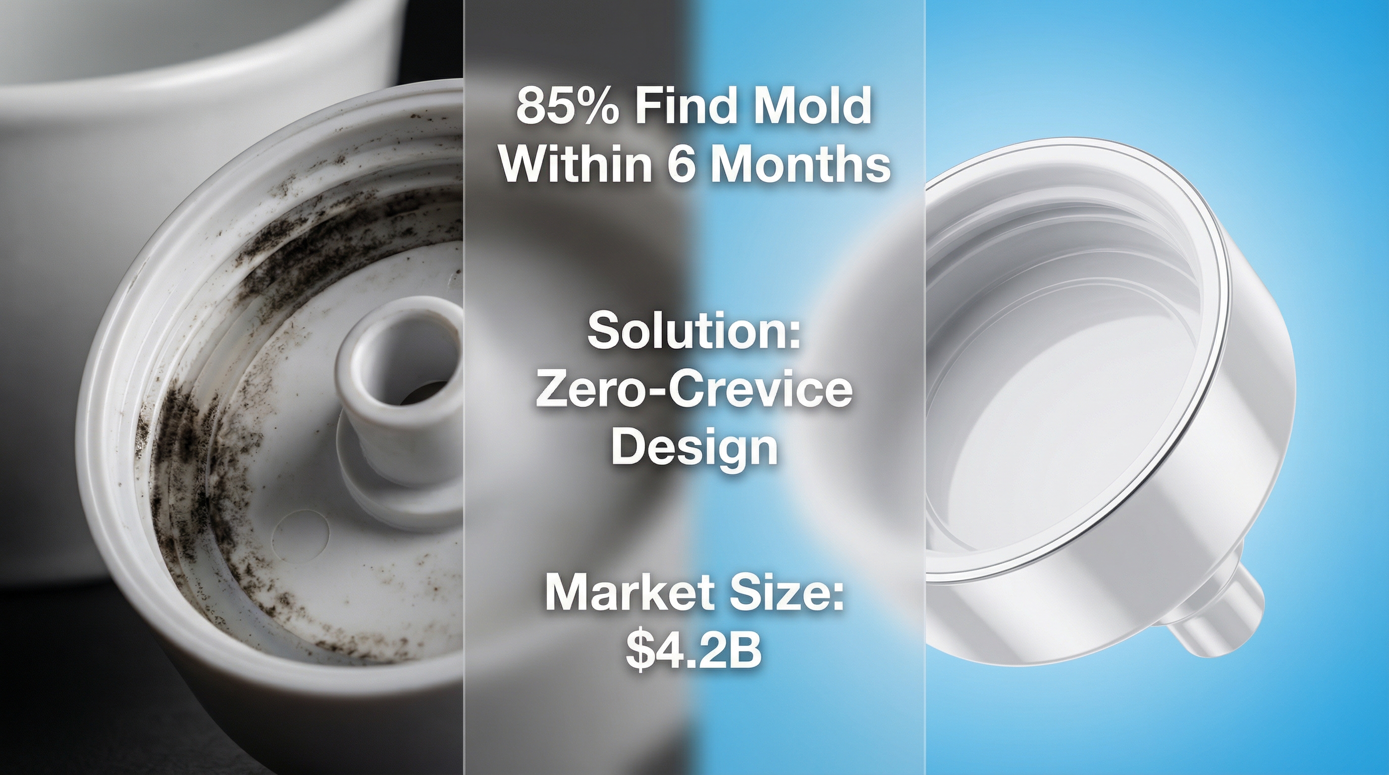 • Why current products fail: Intricate, non-removable parts prioritize leak prevention over long-term sanitary maintenance.