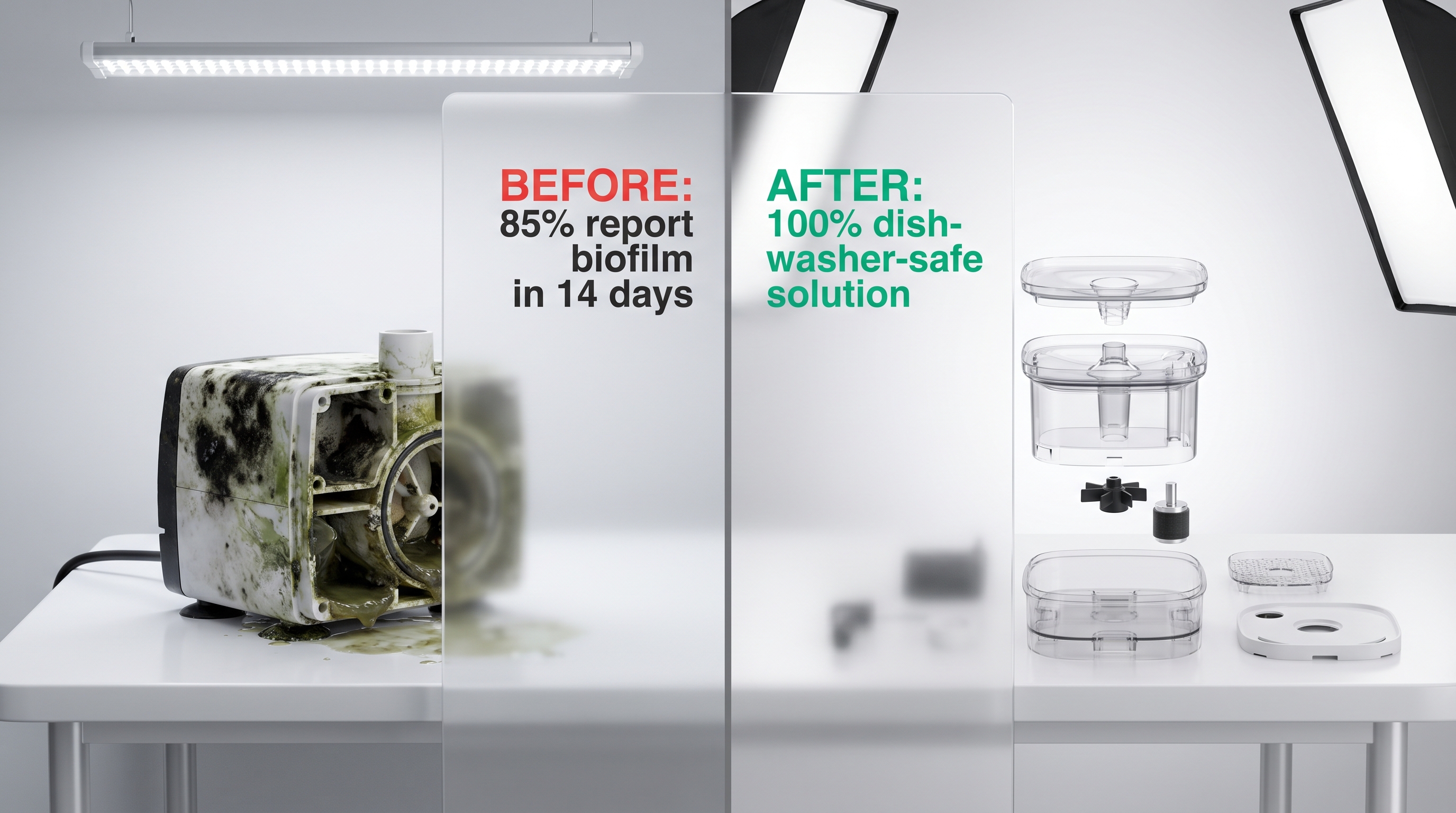 - Why current products fail: Most manufacturers use $2 mass-produced pumps intended for fish tanks, which lack food-grade disassembly features.