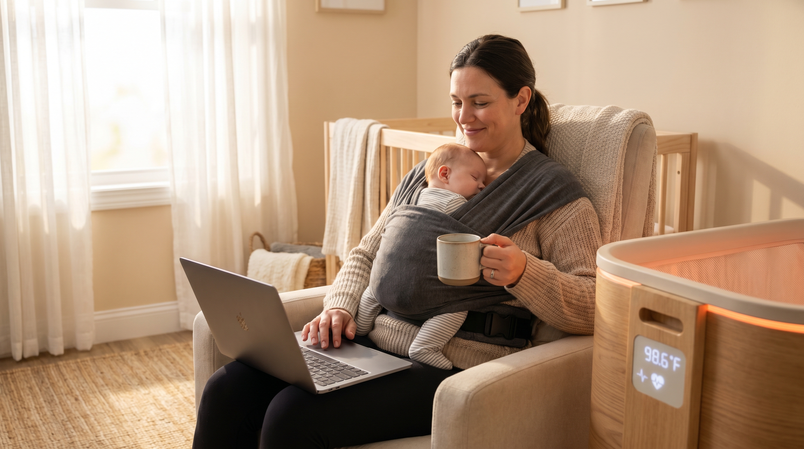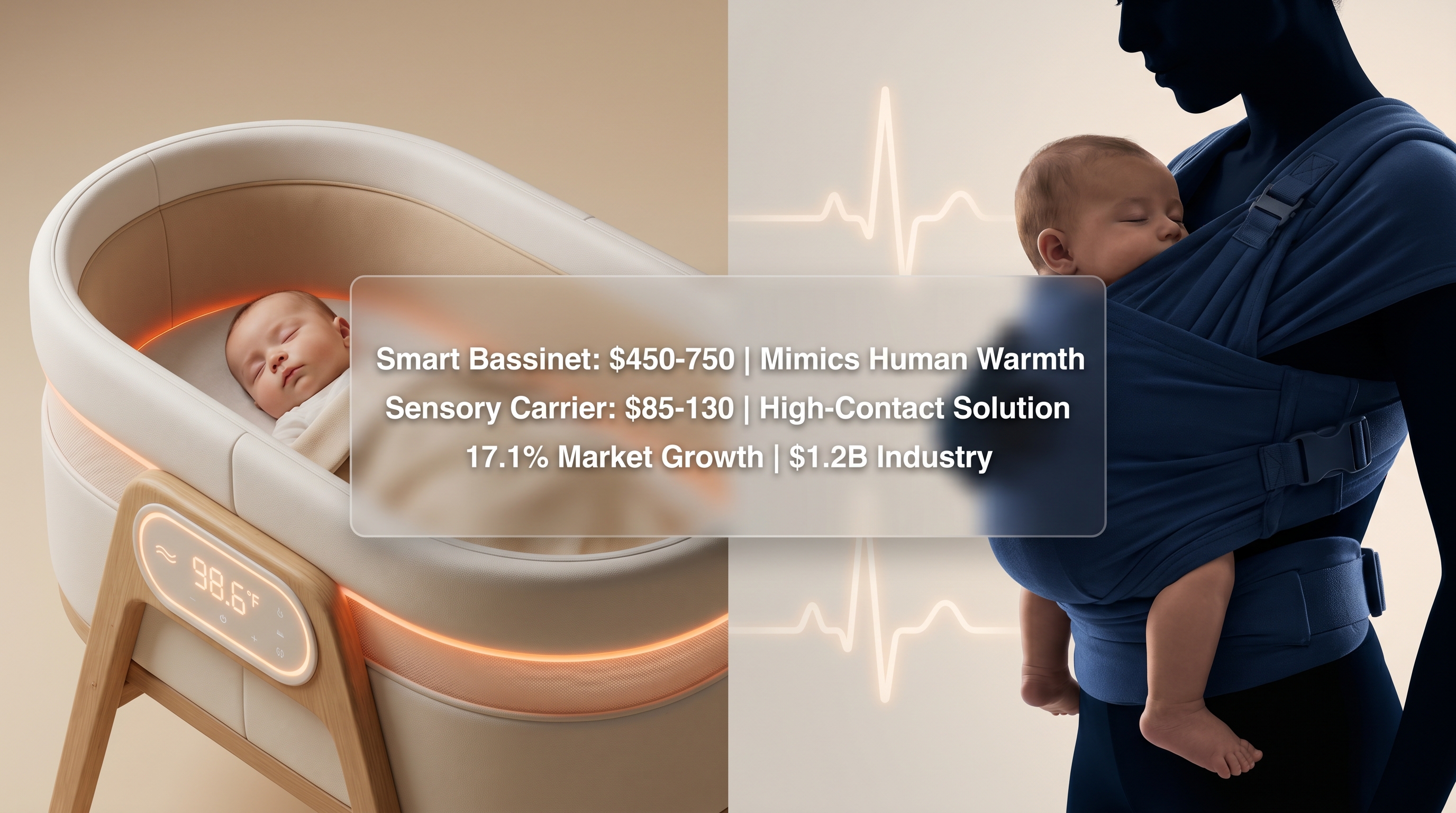 Exhausted parents are driving a 17.1% surge in demand for "smart" baby gear that replicates human tactile feedback rather than mechanical rocking.