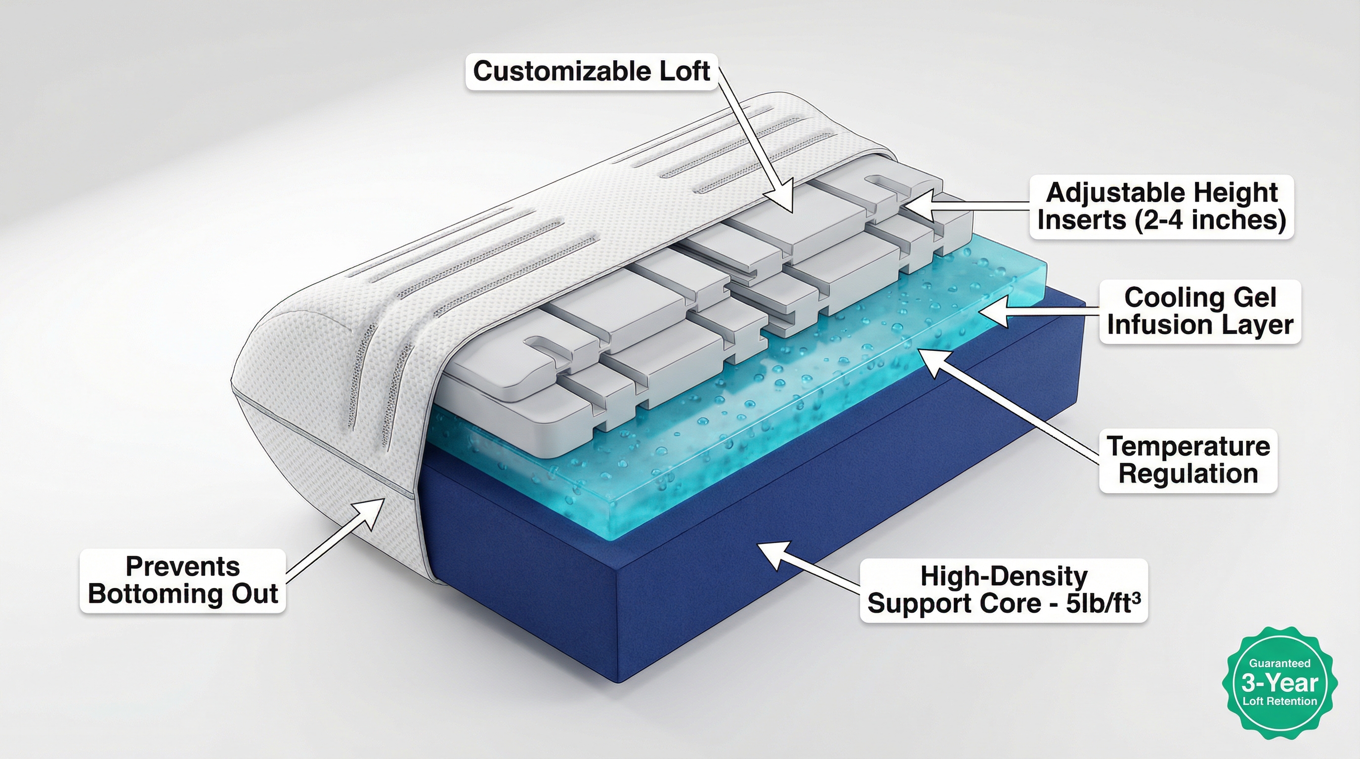 Product Solution 1: Hybrid High-Density Core Pillow