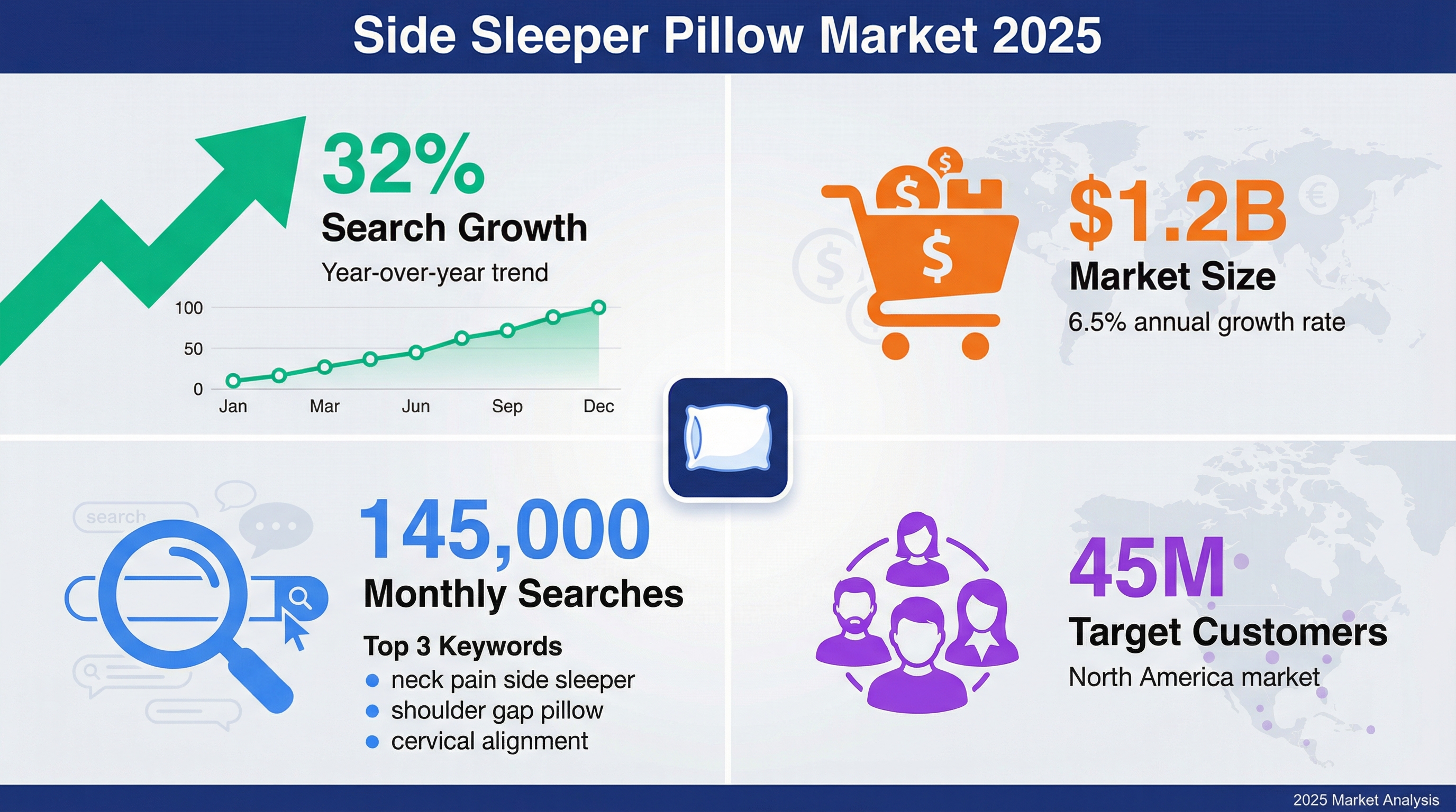 - Search volume: "Pillow for neck pain side sleeper" trending up 32% in the past 12 months.