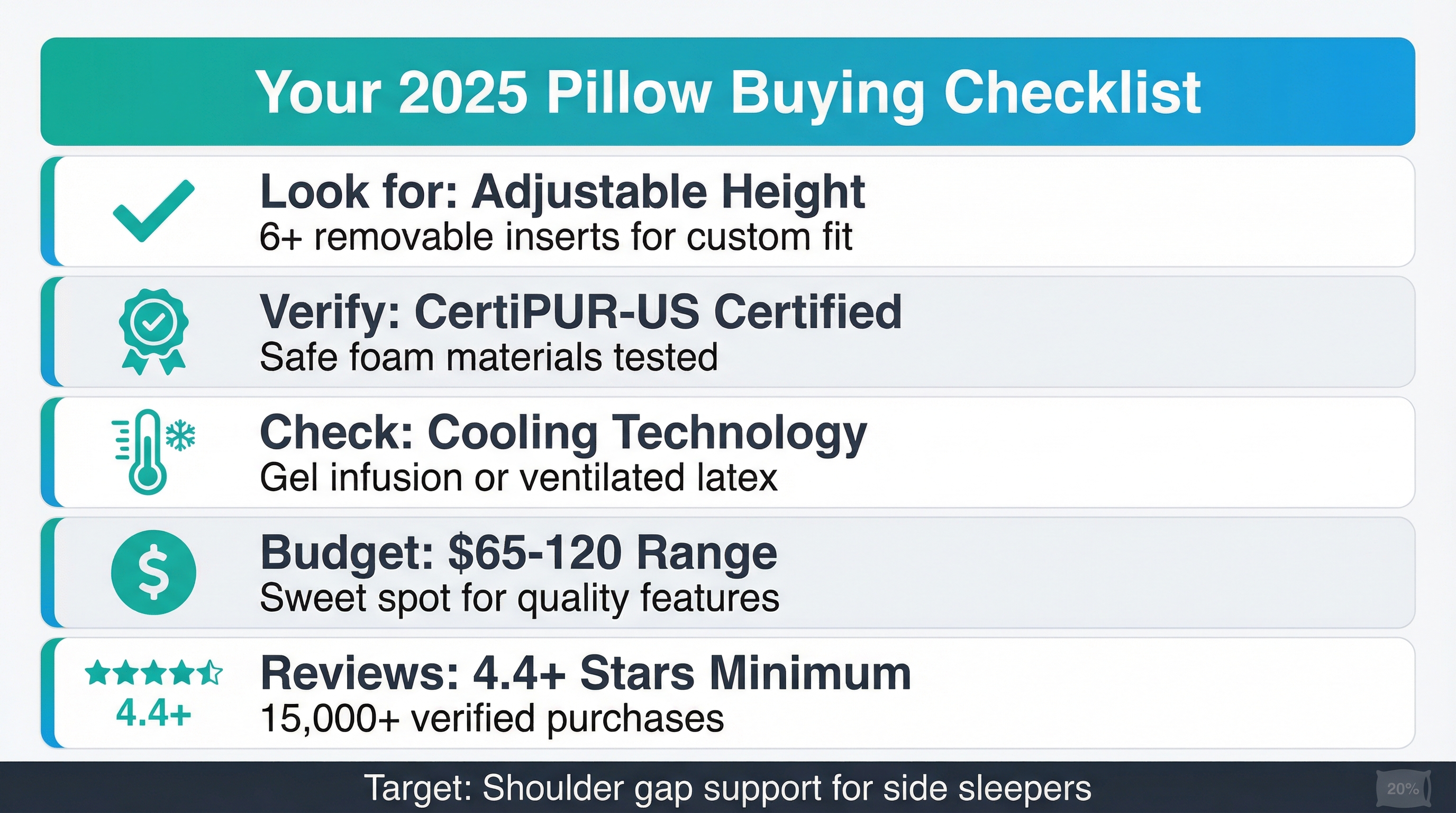 - Related searches: "Shoulder gap pillow," "Cervical alignment," "Best pillow for side sleepers 2025."