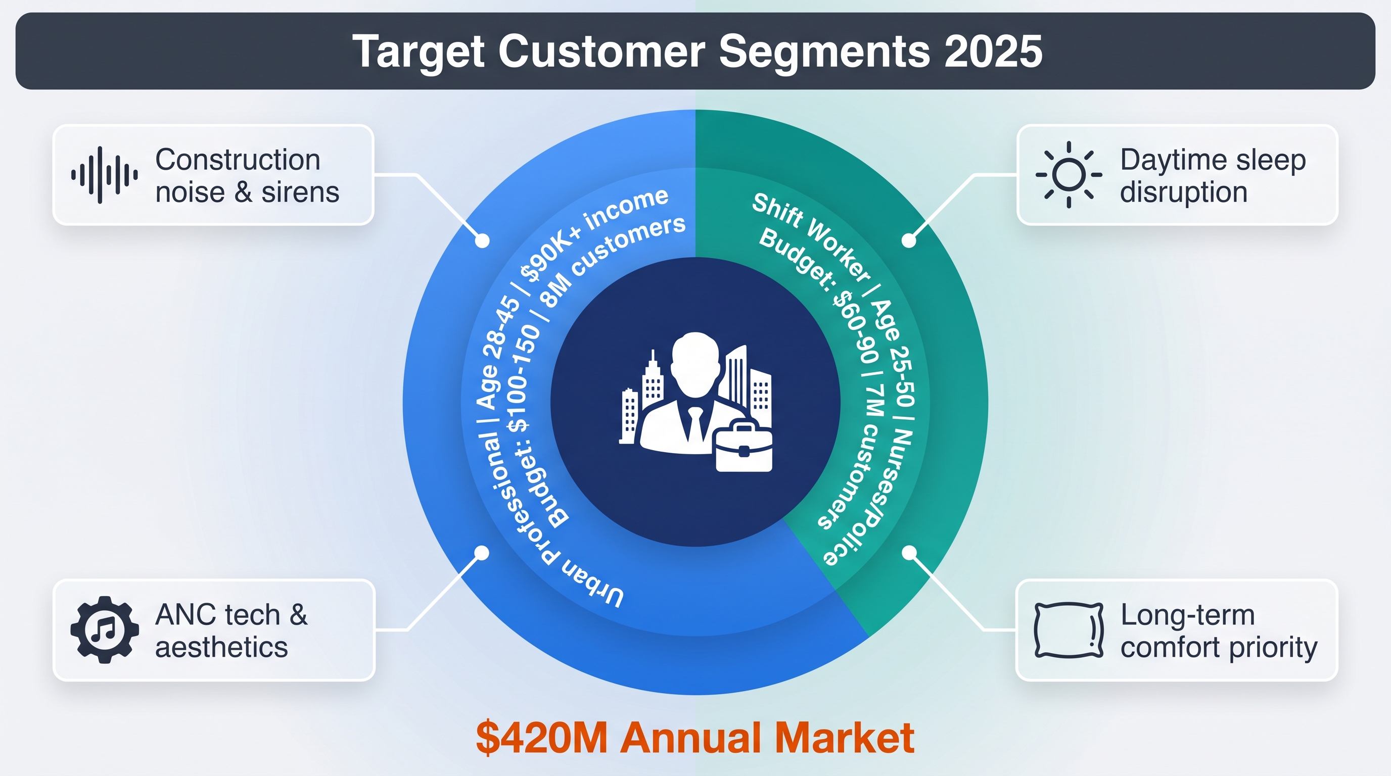 - Solves: Physical discomfort for side sleepers and city noise intrusion.