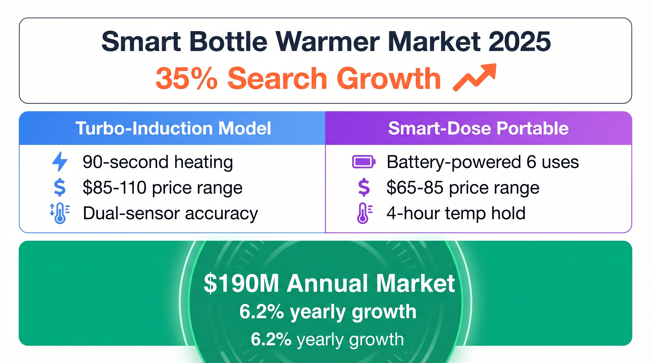 - Search volume: "Fast bottle warmer" trending up 35% in past 12 months.