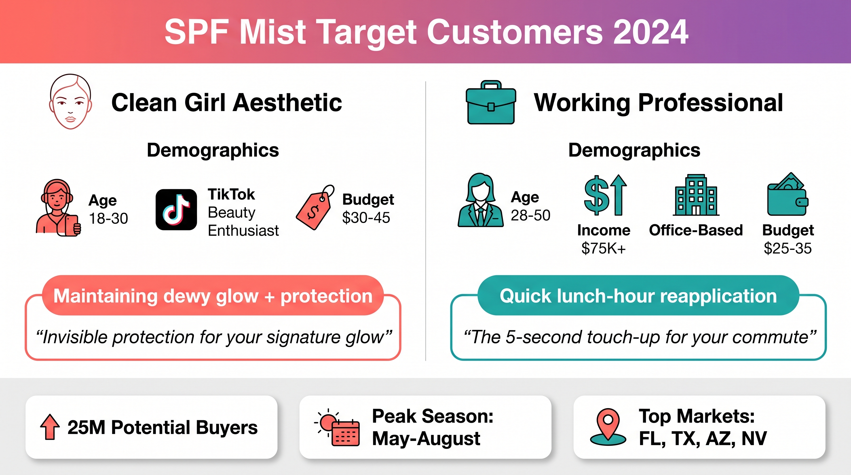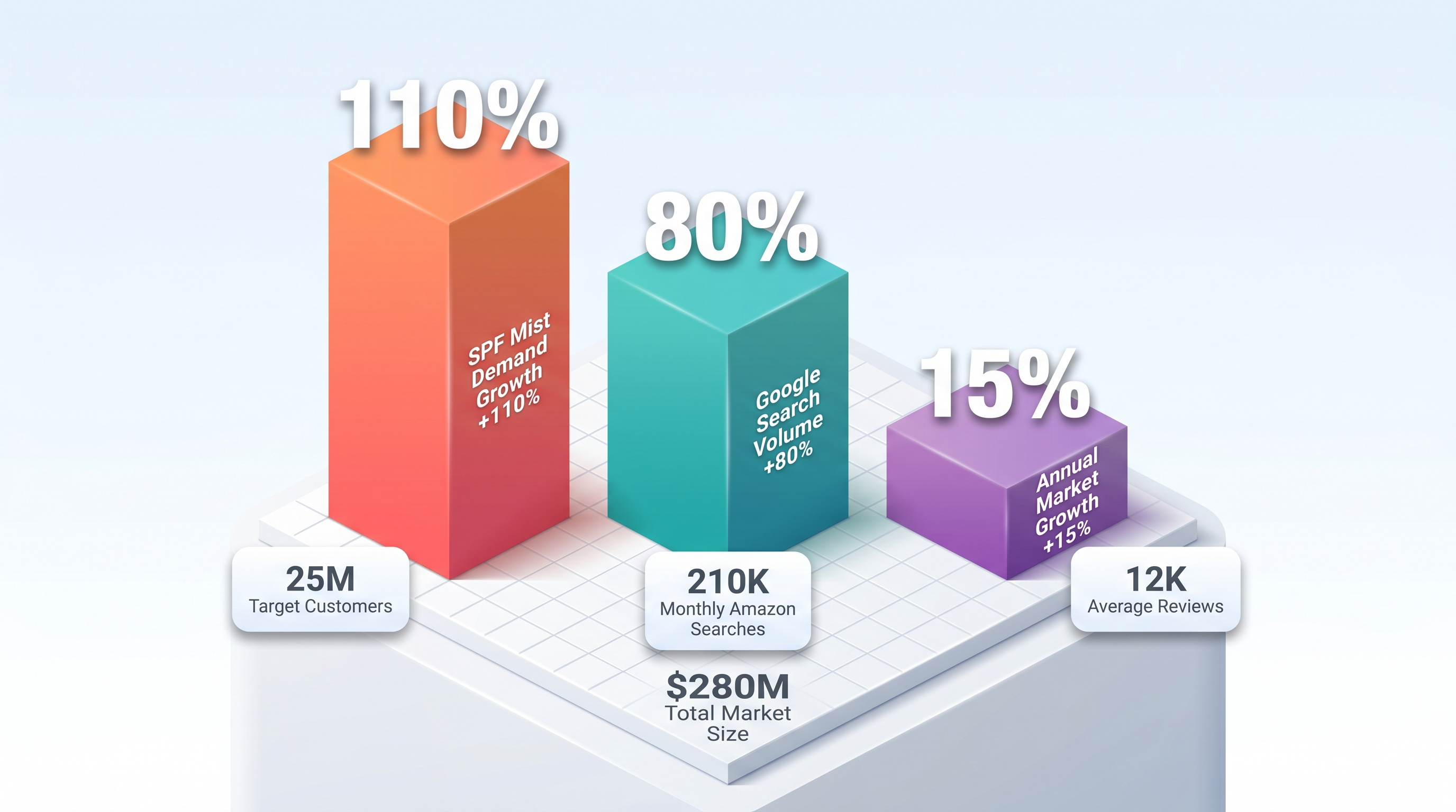 - Search volume: "SPF setting spray" trending up 80% in past 12 months.