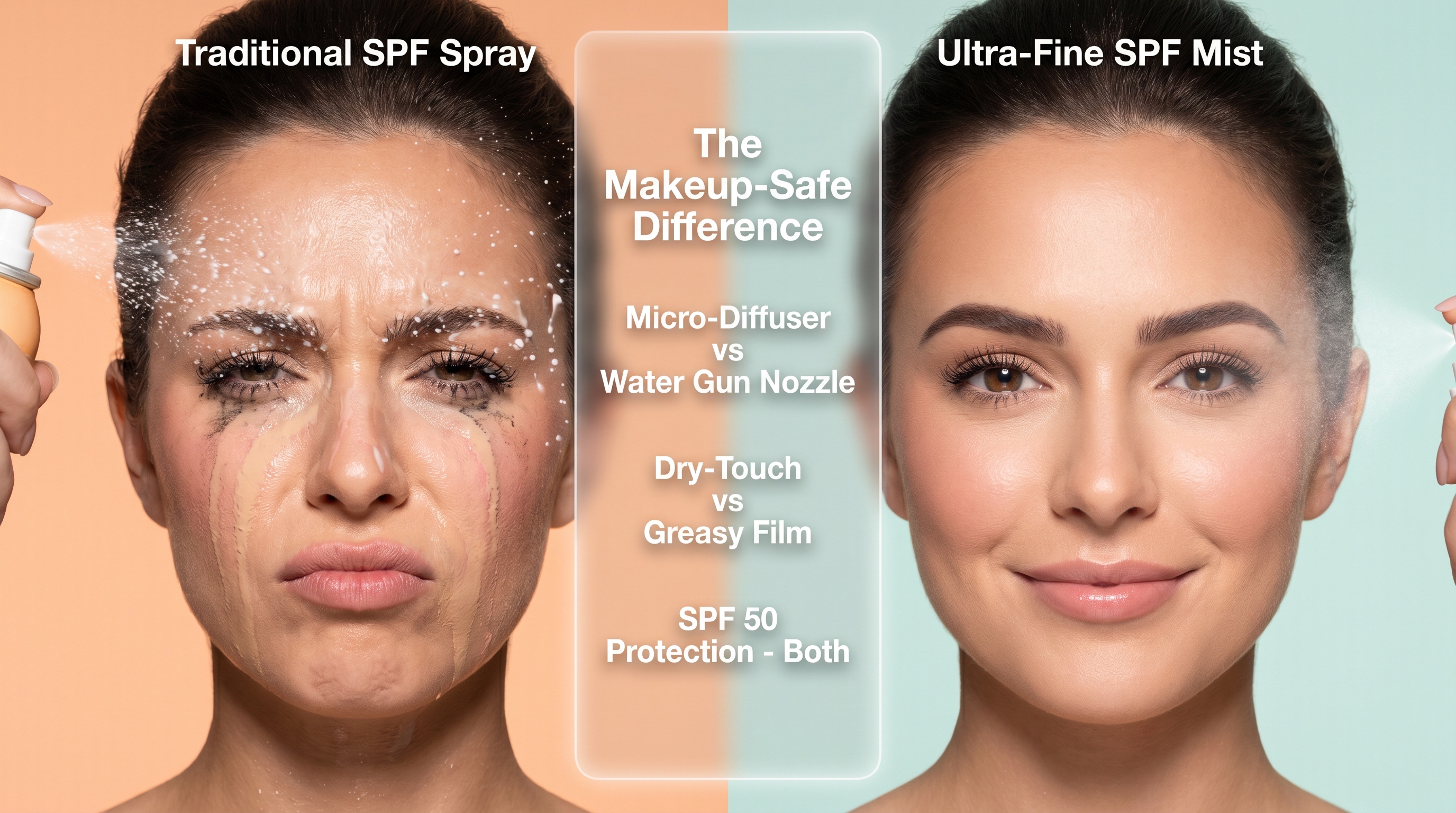 Beauty enthusiasts on social media report that current SPF sprays act like "water guns" rather than mists. Large droplets destroy foundation and cause mascara to run. Many high-SPF formulas use denatured alcohol which stings the eyes and leaves a greasy, unappealing film. Consequently, users are skipping midday reapplication, risking skin damage because they do not want to ruin their expensive makeup.