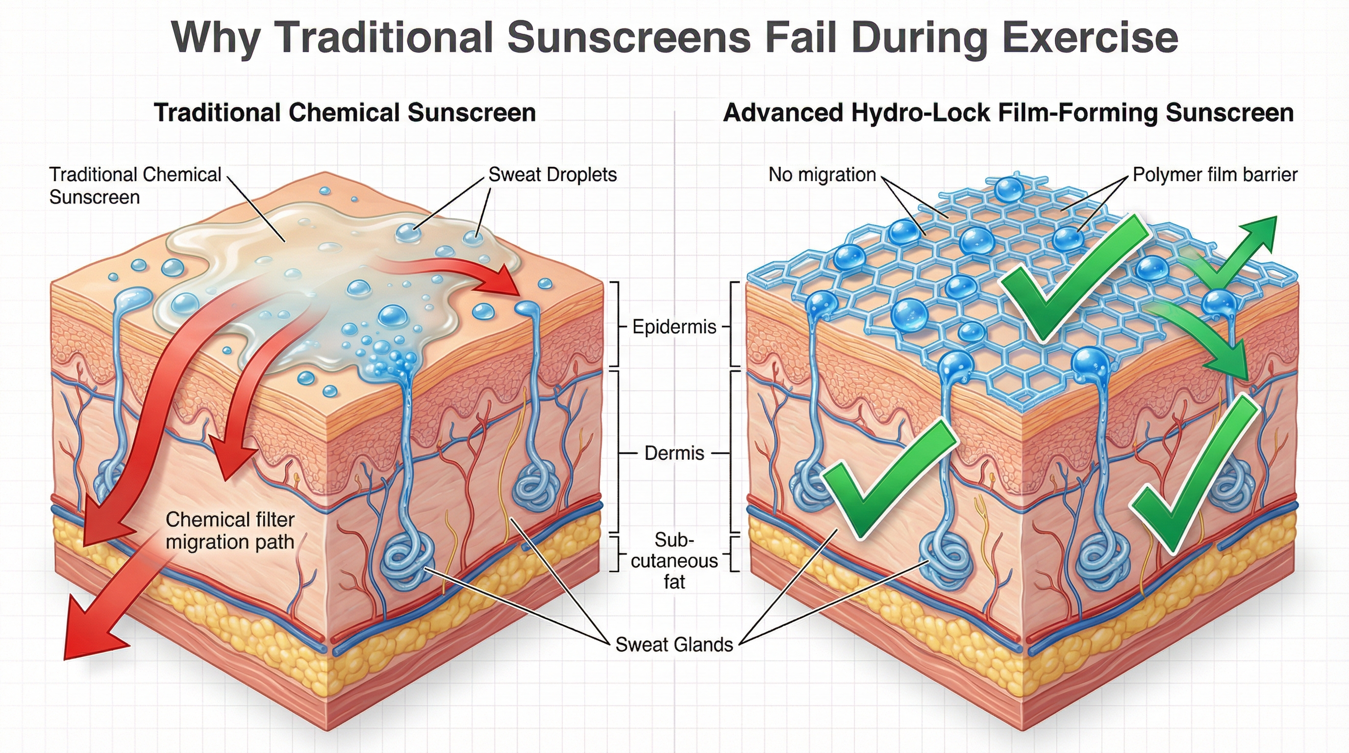 Over 65% of outdoor athletes report stopping mid-workout due to sweat-induced sunscreen eye irritation, creating a massive opening for advanced film-forming formulas.