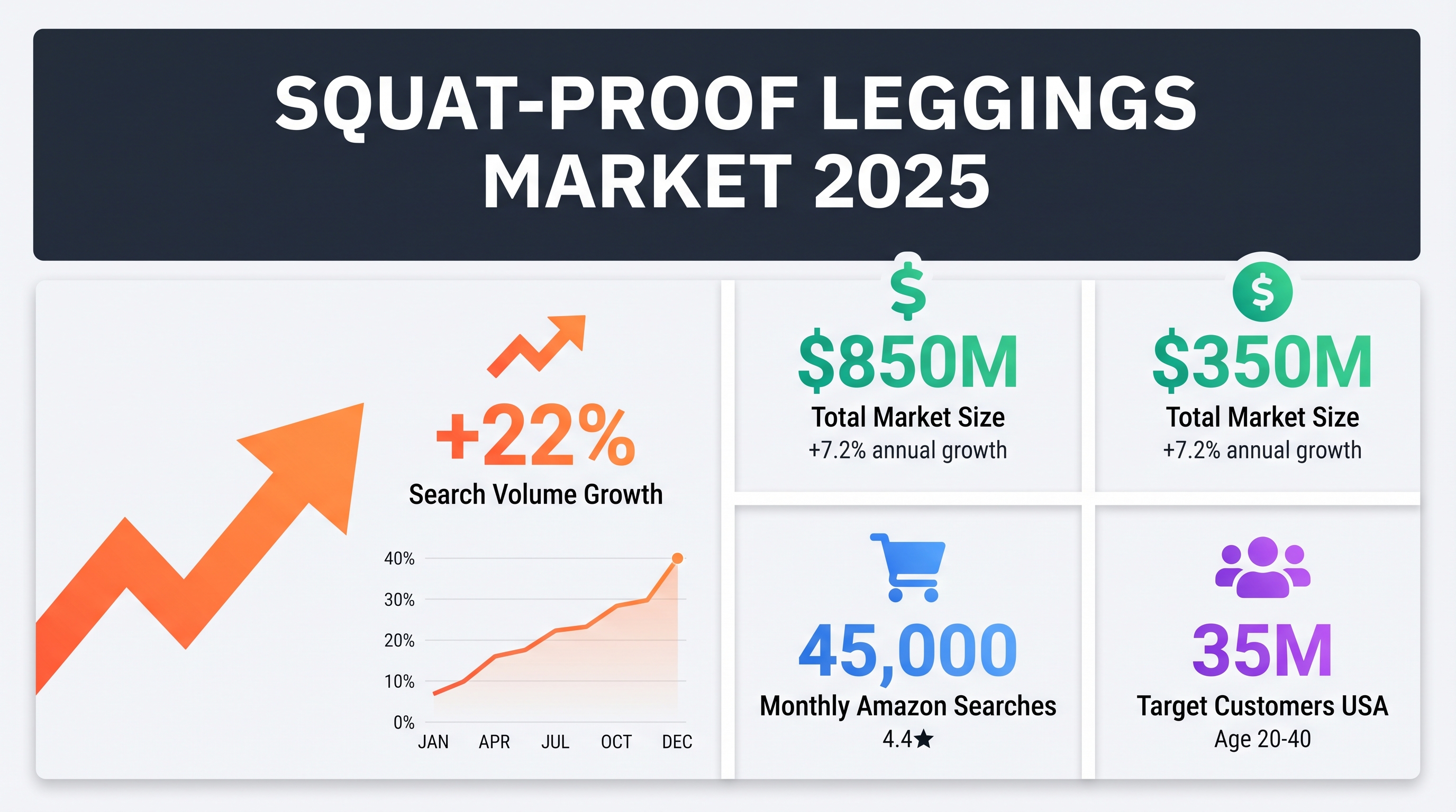 - Search volume: "squat proof leggings" trending up 22% in past 12 months.