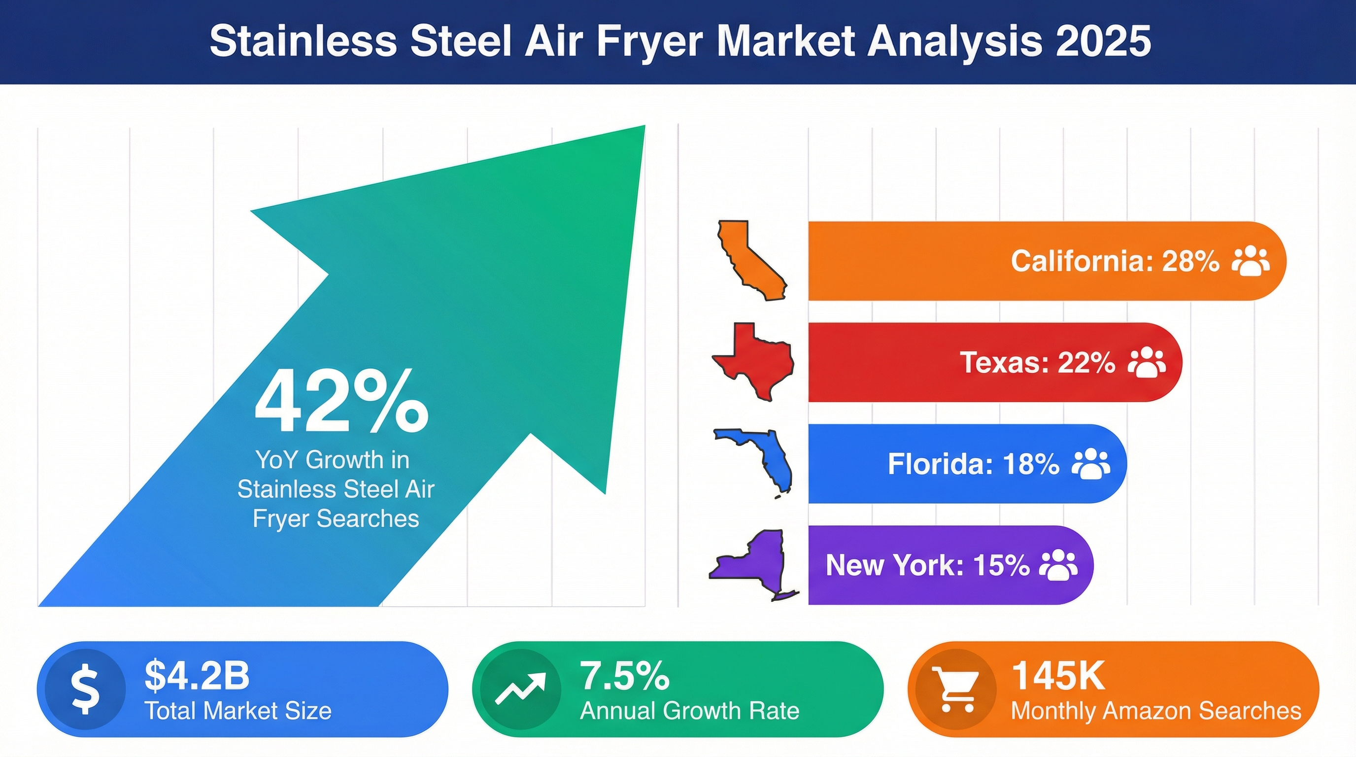 - Search volume: "Stainless steel air fryer" trending up 42% in past 12 months.
