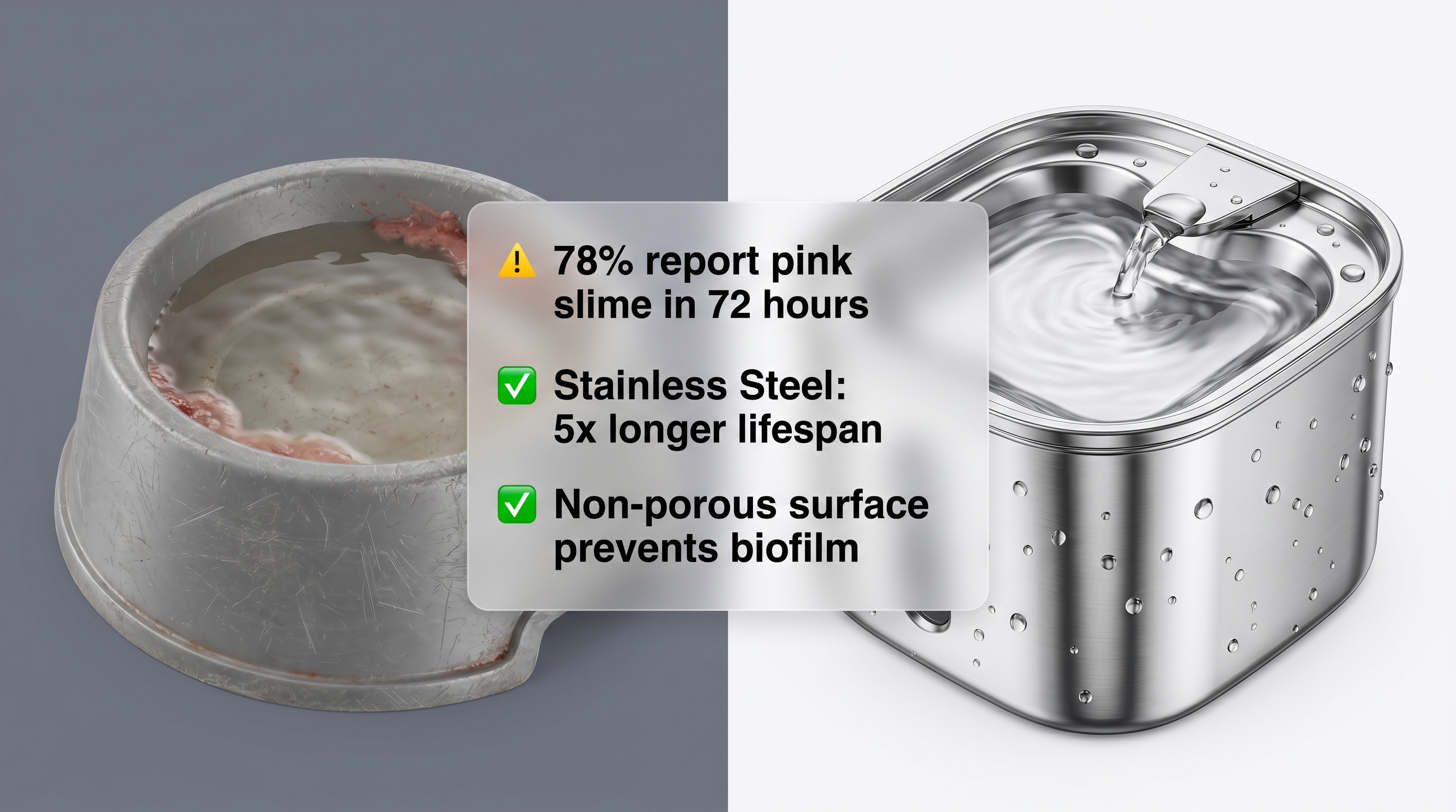Nearly 78% of pet owners report visible bacterial "pink slime" growth in plastic water fountains within just 72 hours of a deep clean.