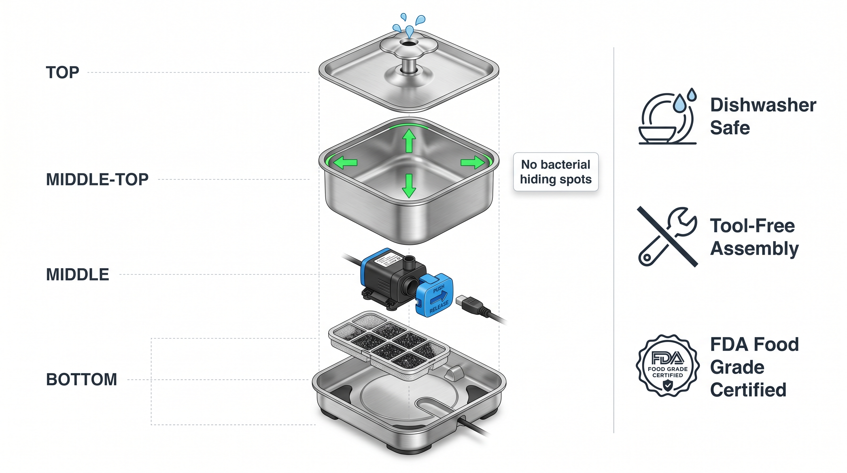 Pet owners on platforms like Reddit are expressing significant frustration with the high maintenance of standard plastic fountains. Porous materials and complex motor housings create inaccessible "nooks and crannies" where Serratia marcescens thrives.