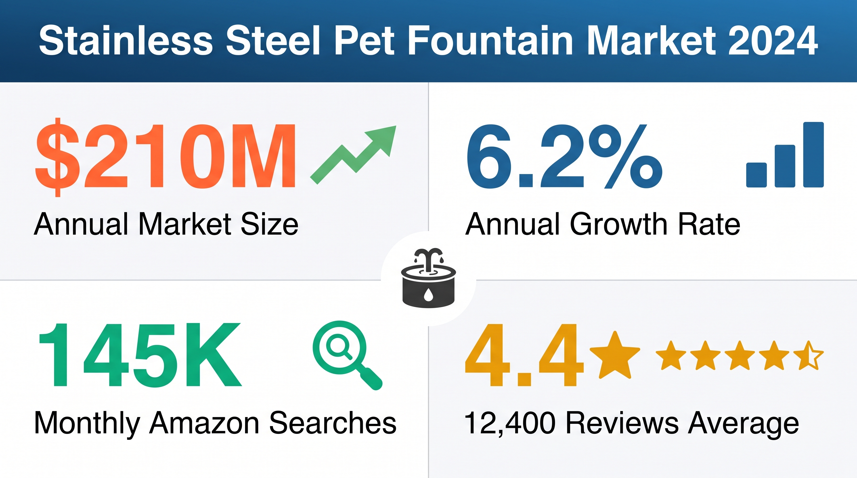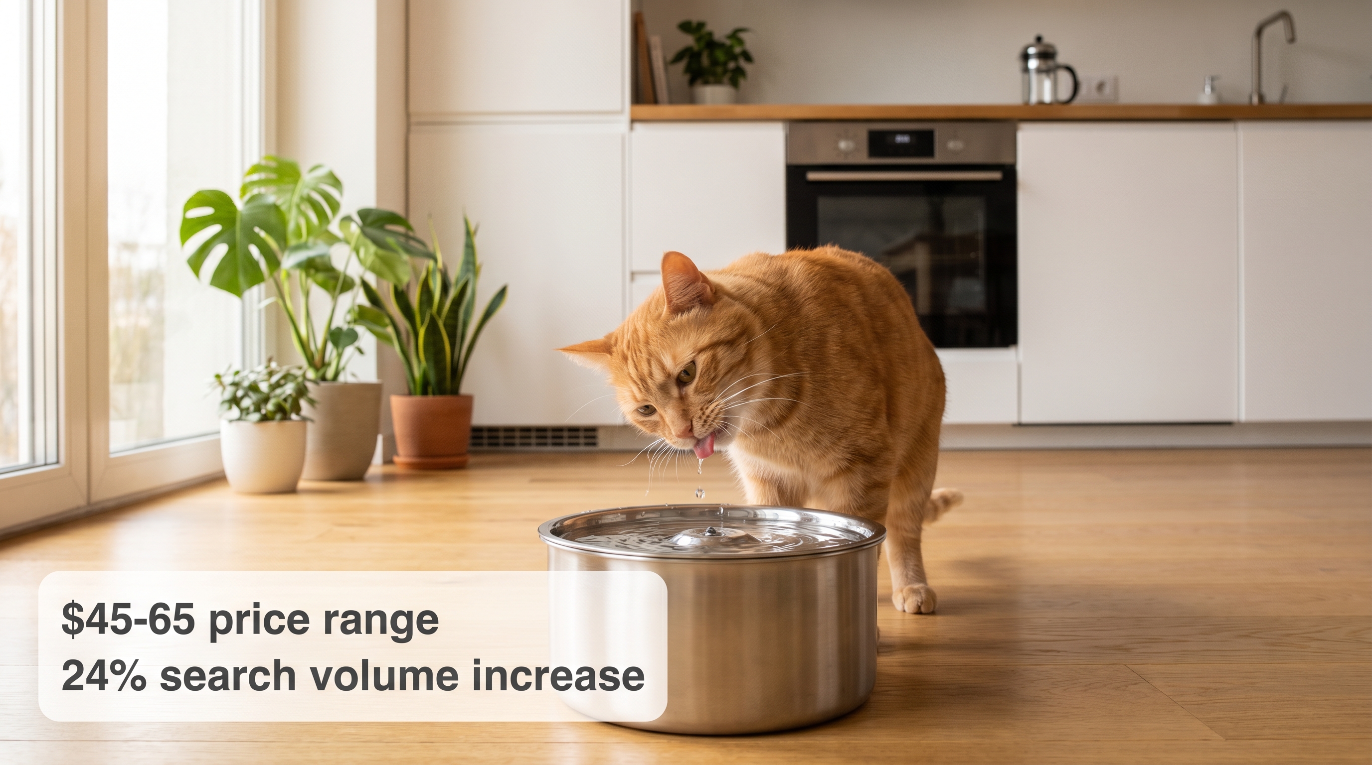 - Search volume: "Stainless steel cat fountain" trending up 24% in past 12 months.