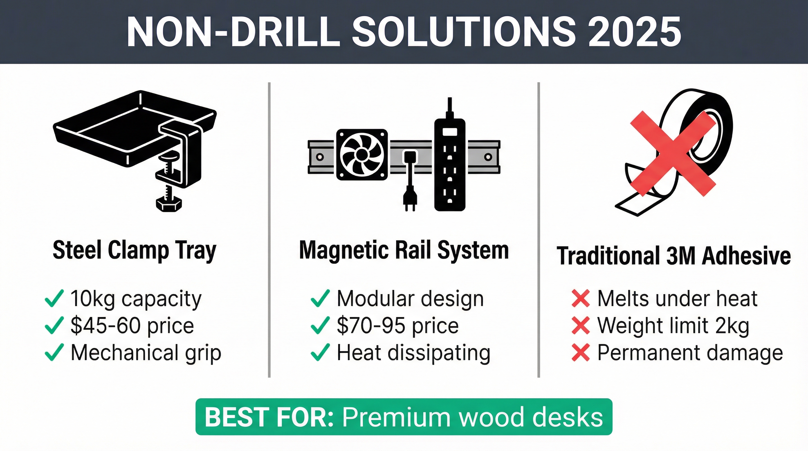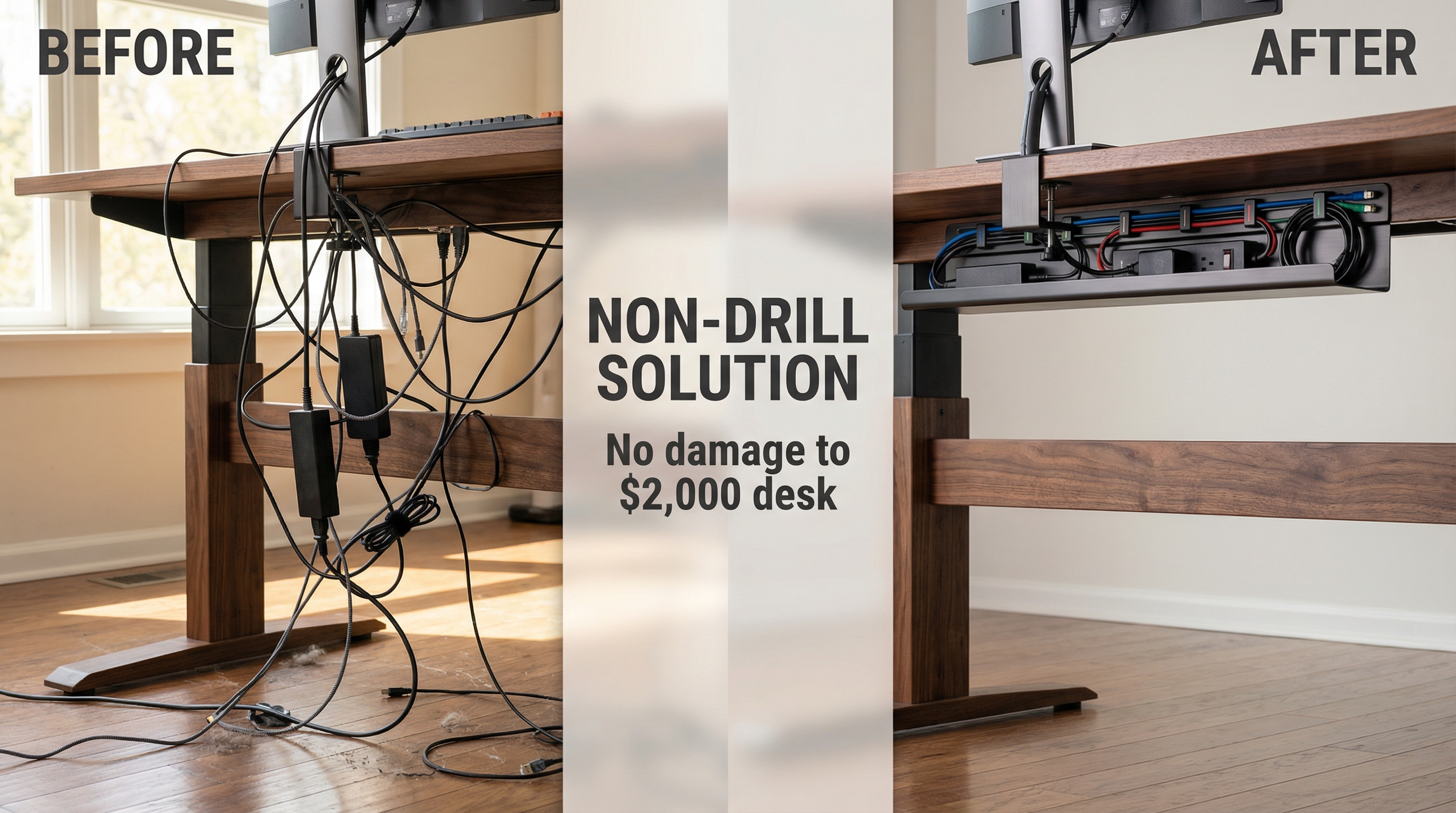 The search for "non-drill cable management" has surged 40% as owners of premium wood desks refuse to damage their furniture with screws.