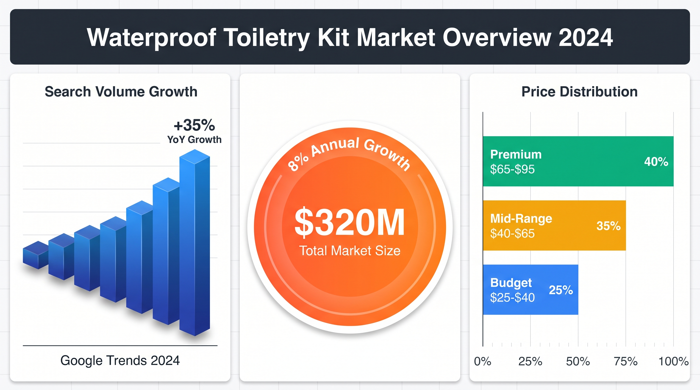 - Search volume: "Leak proof toiletry bag" trending up 35% year-over-year.