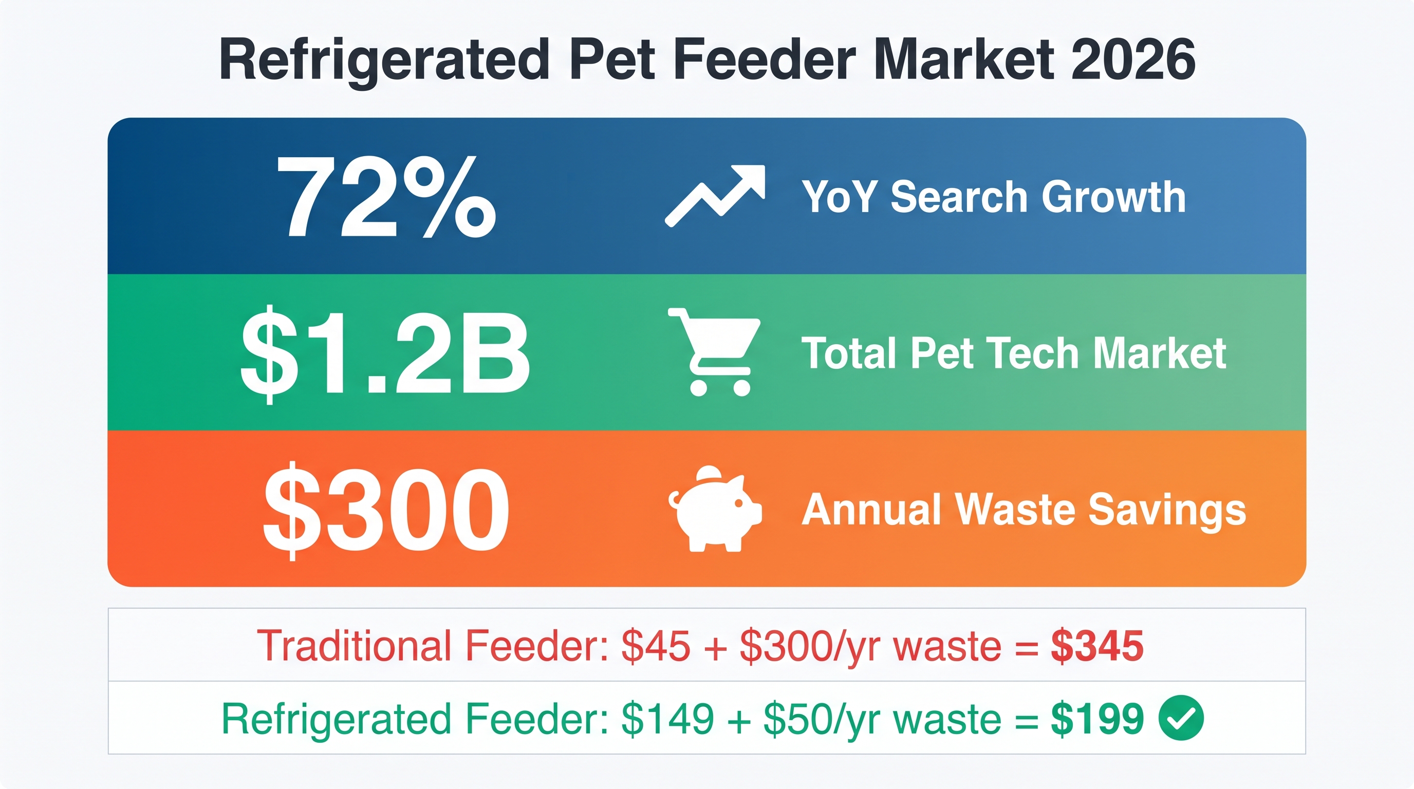 - Search volume: "Refrigerated automatic cat feeder" up 72% YoY.